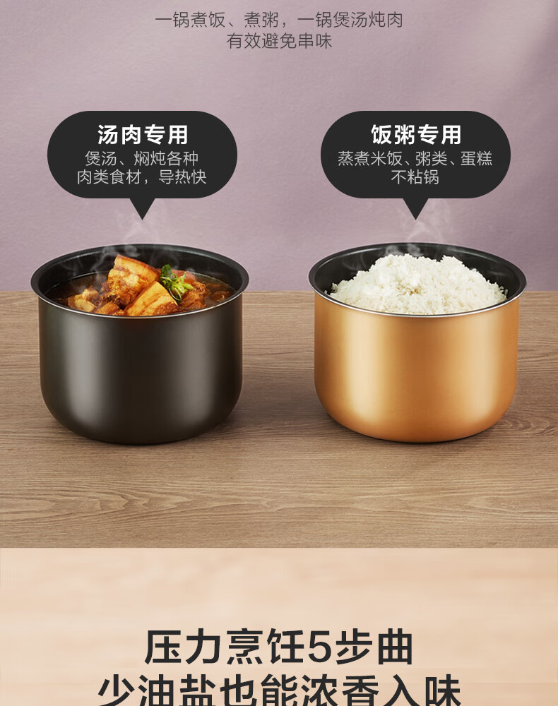 电压力锅家用5升高压锅大容量不锈钢双胆多功能高压快煮饭煲