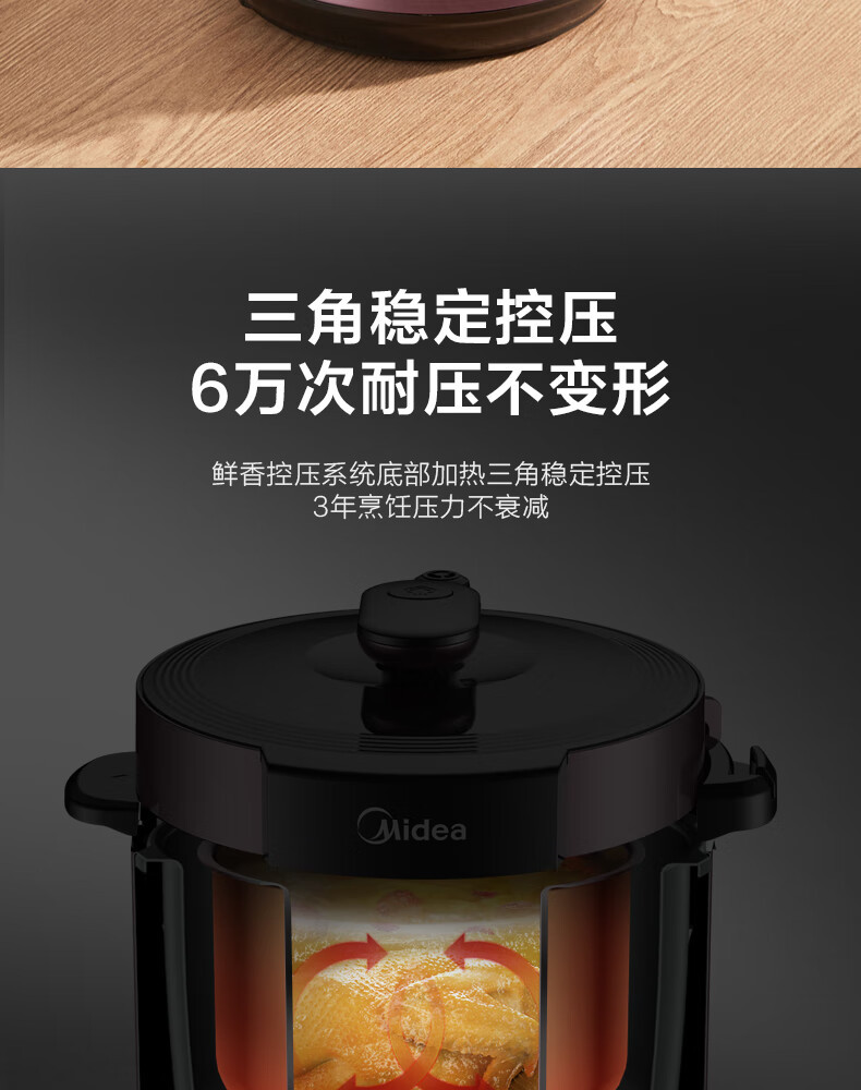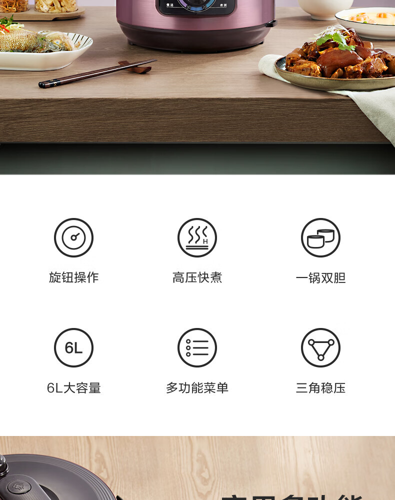 电压力锅家用6升高压锅大容量双胆电旋钮控制多功能一键排气