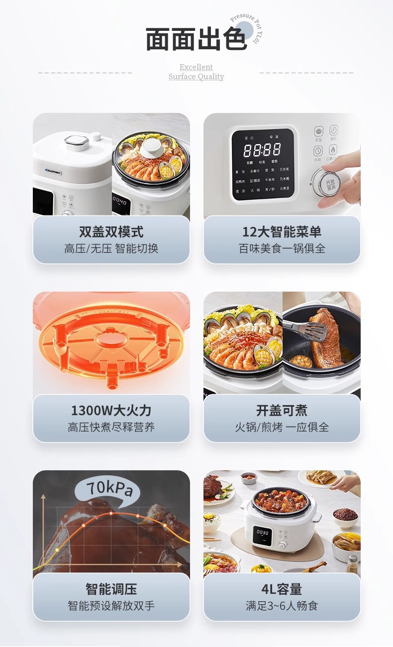 蓝宝电压力锅家用4升高压锅快速饭煲智能多功能全自动电饭锅
