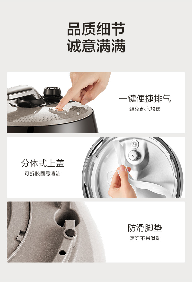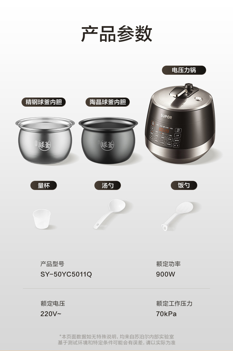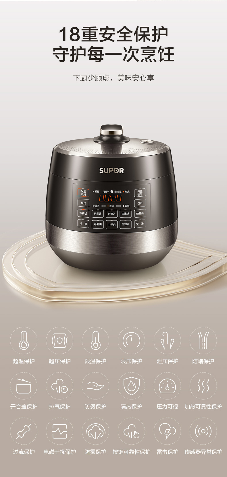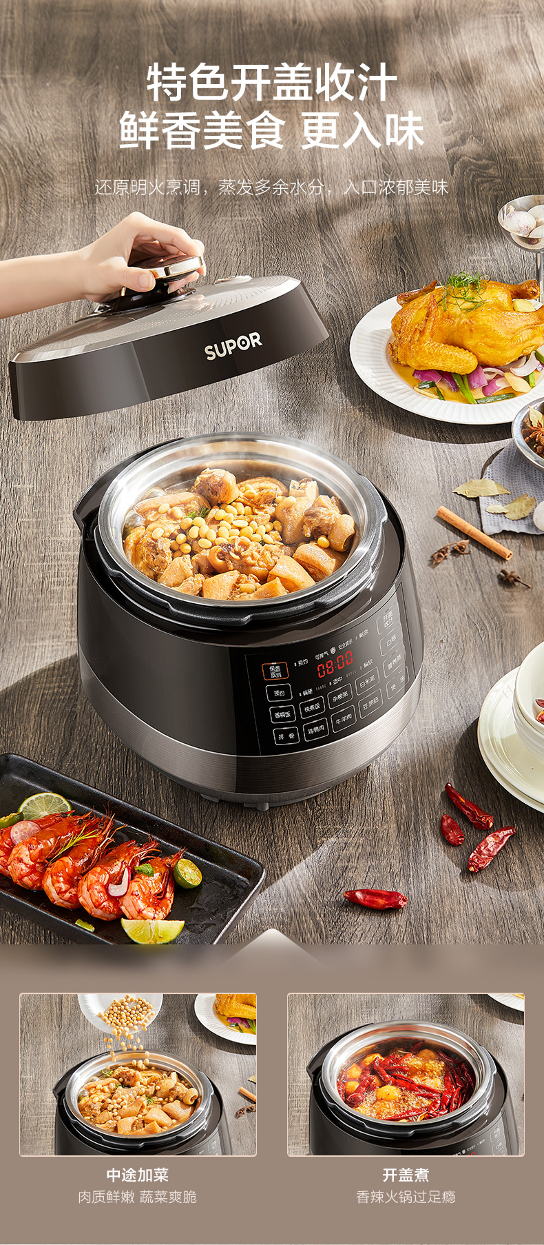 电压力锅家用5升大容量无涂层不锈钢深锅球釜双胆高压电饭