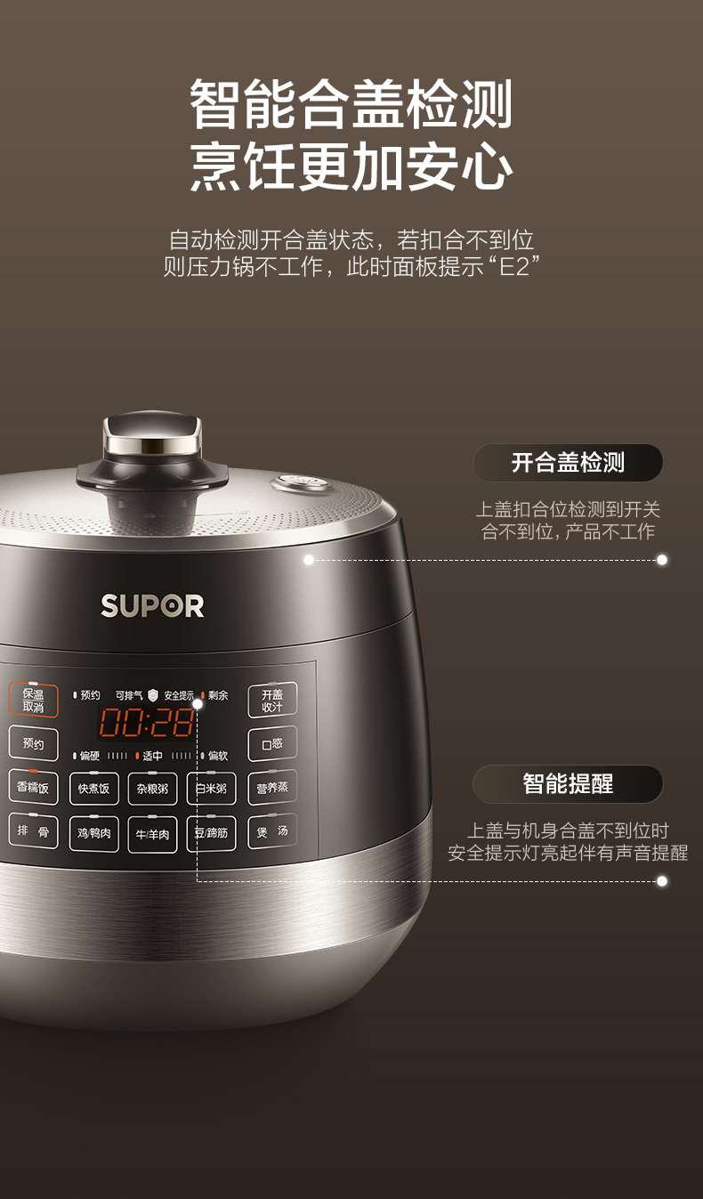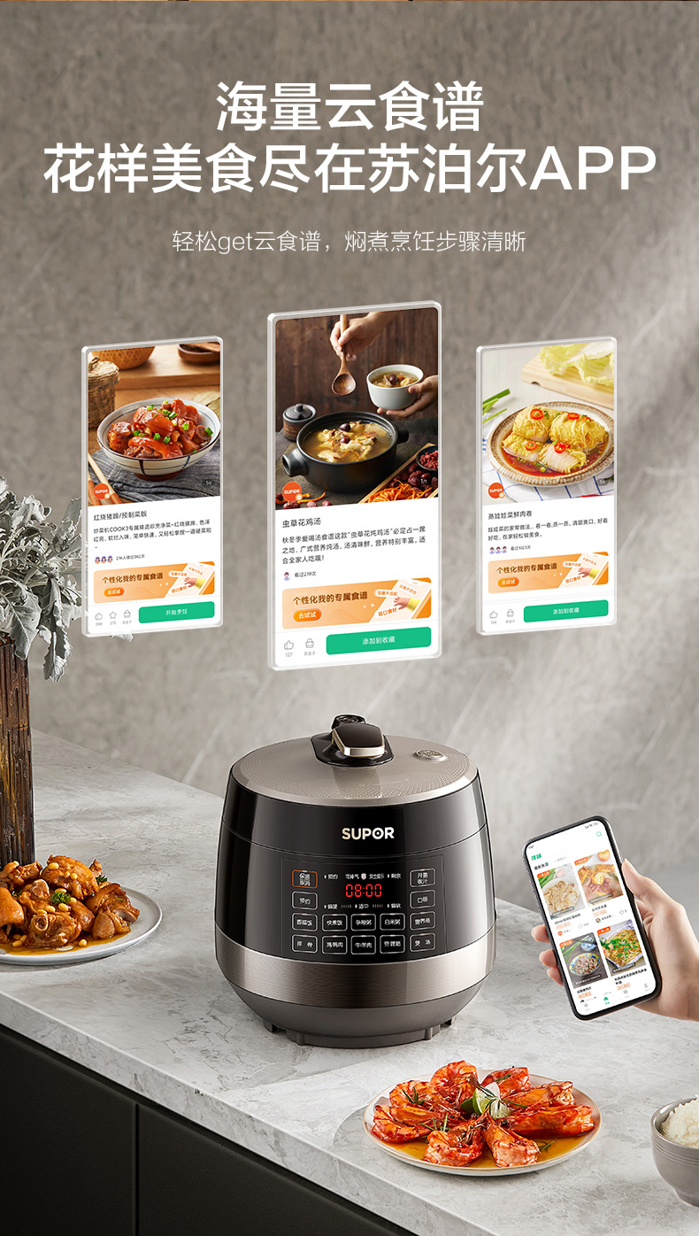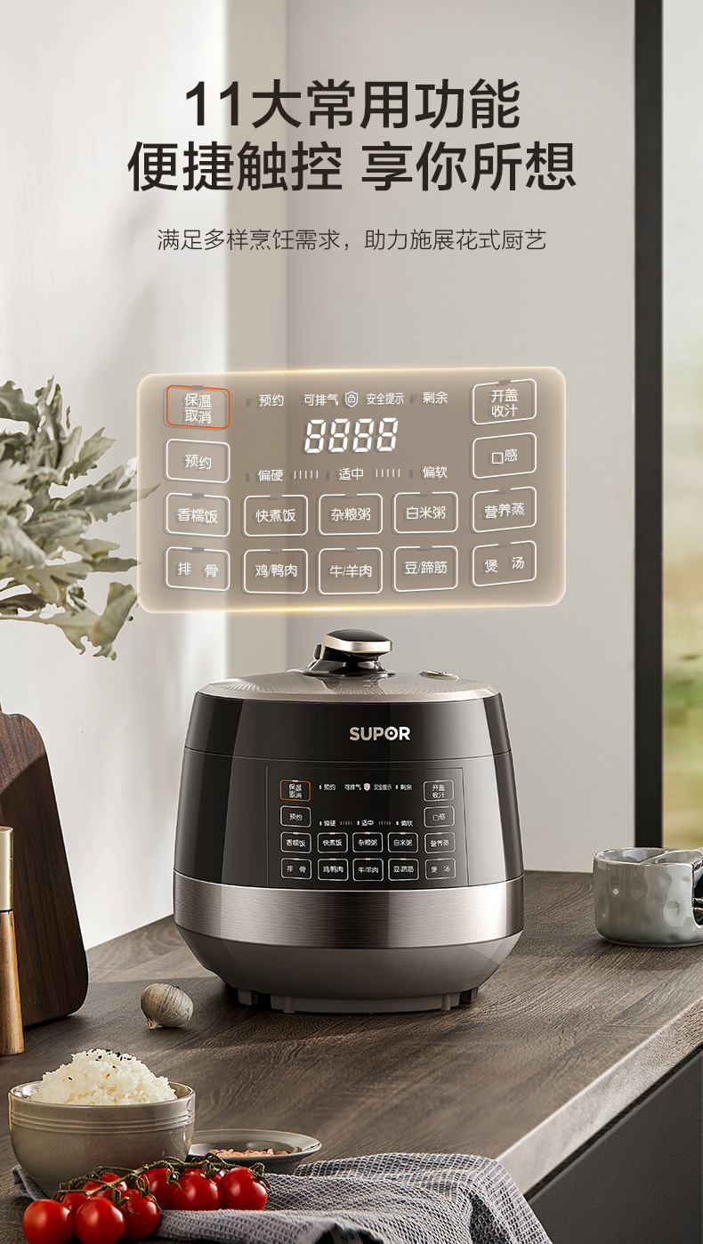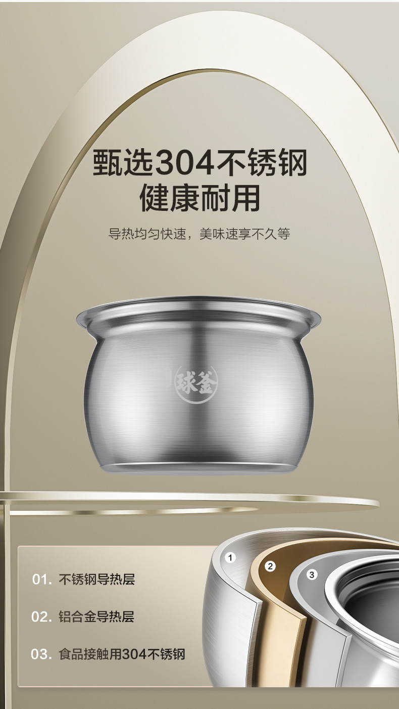 电压力锅家用5升大容量无涂层不锈钢深锅球釜双胆高压电饭