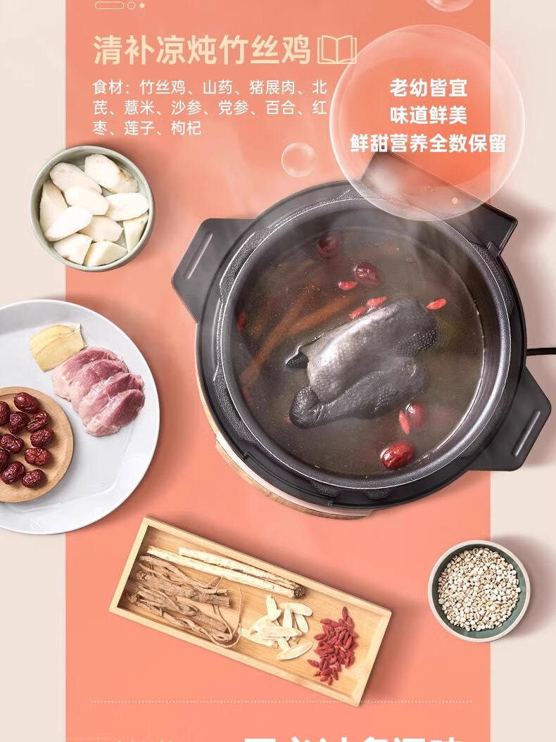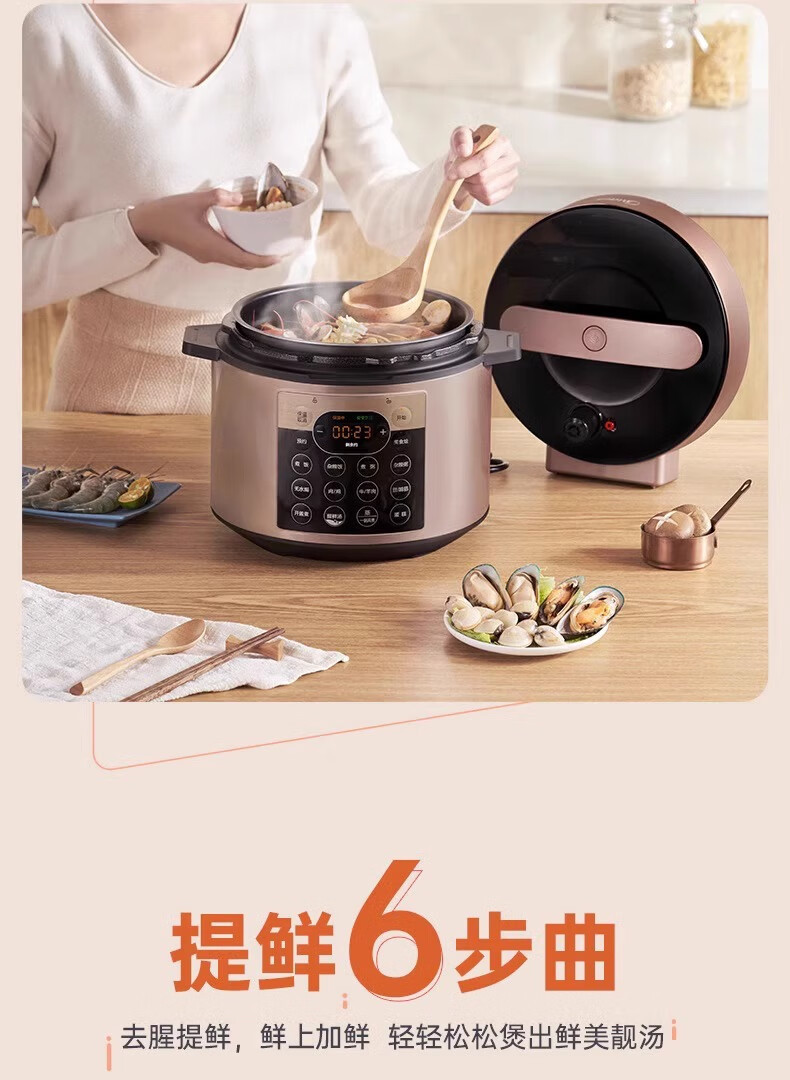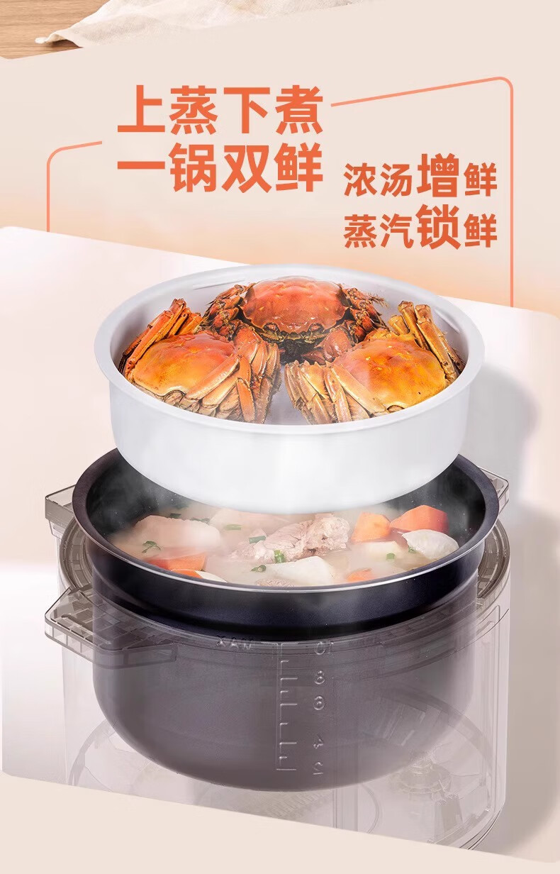 电压力锅家用5升高压锅多功能双胆智能开盖收汁全自动大容量