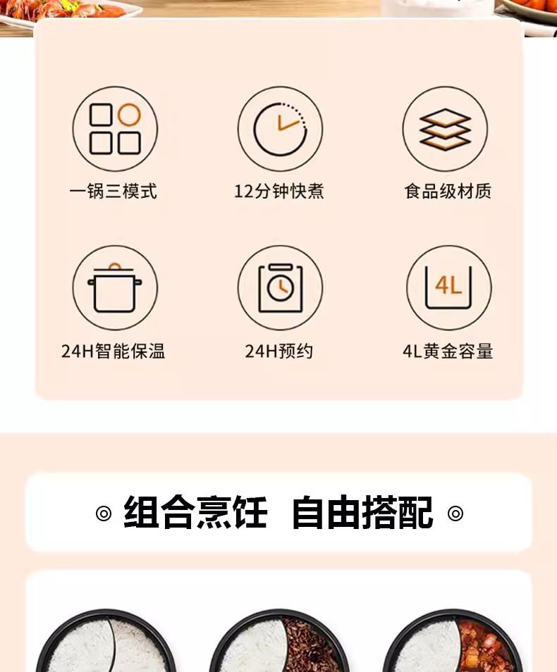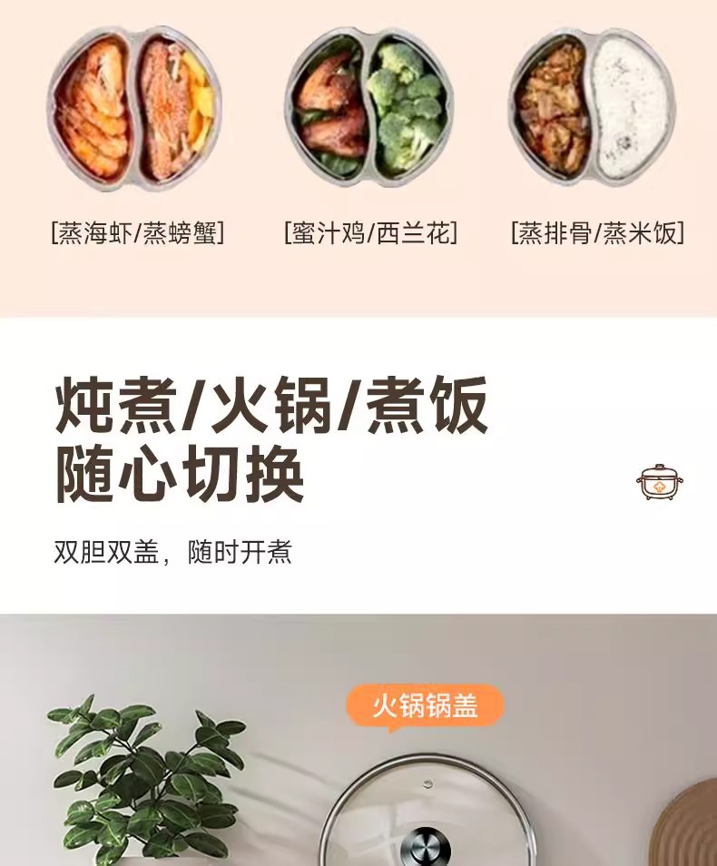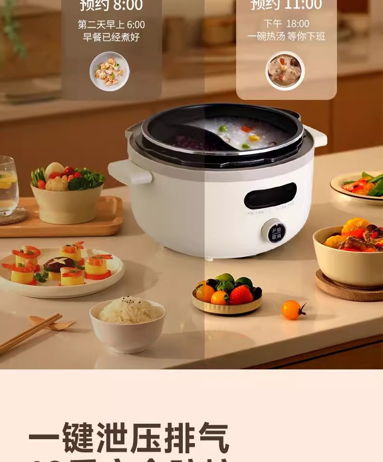 电压力锅家用陶瓷釉三格内胆不沾锅鸳鸯内胆多功能火锅电饭煲