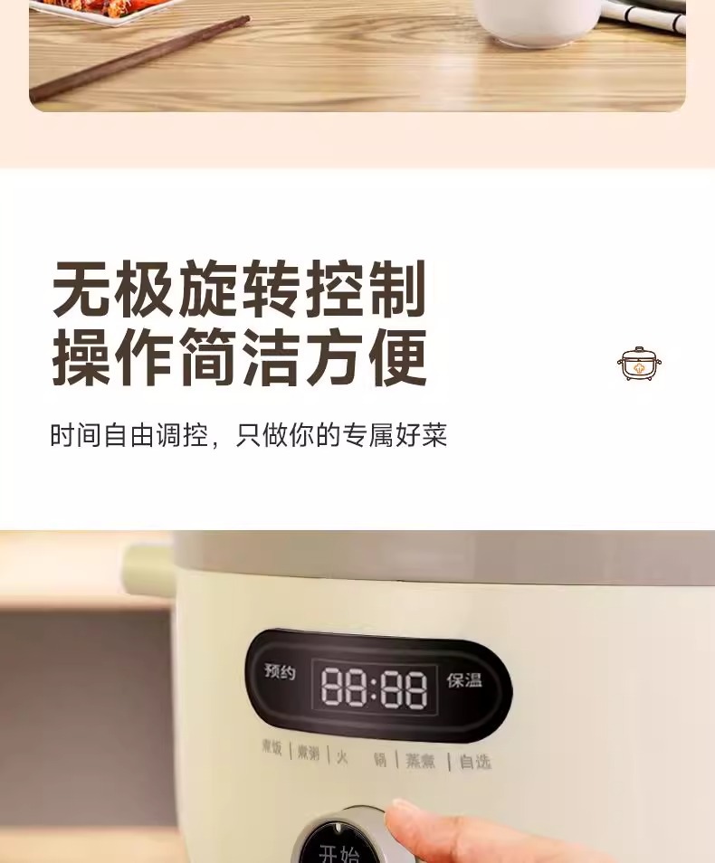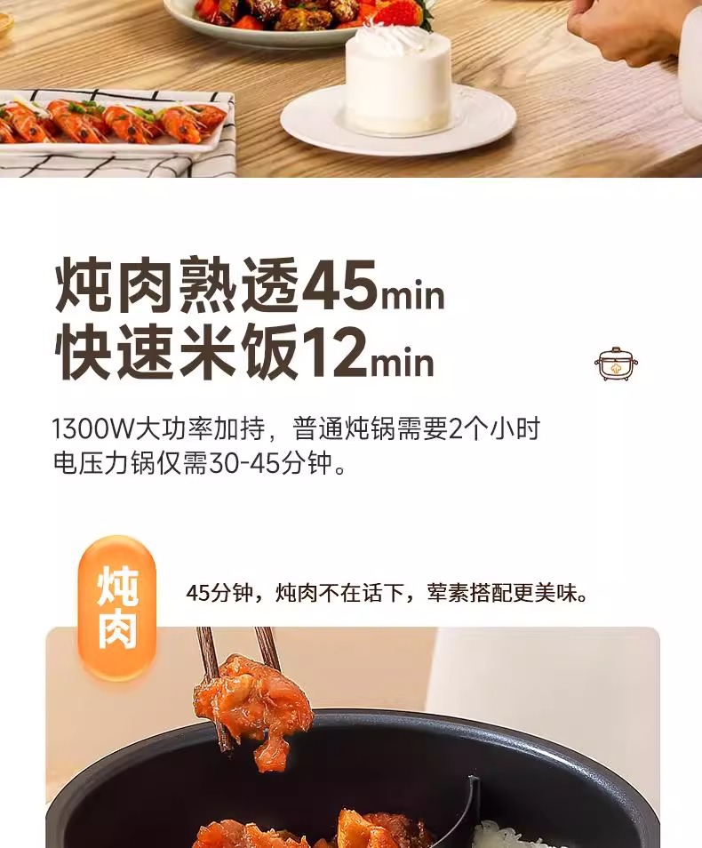 电压力锅家用4升5升高压锅不粘锅迷你多功能煮饭锅旋钮操控