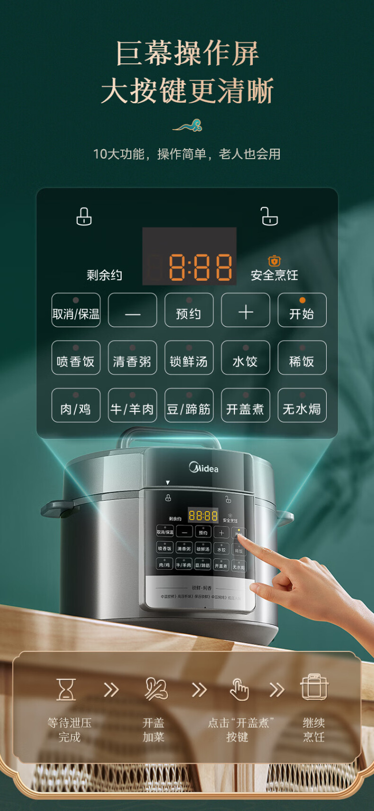 MY-E6910电压力锅智能预约无水焗易清洁双胆大屏多功能高压锅