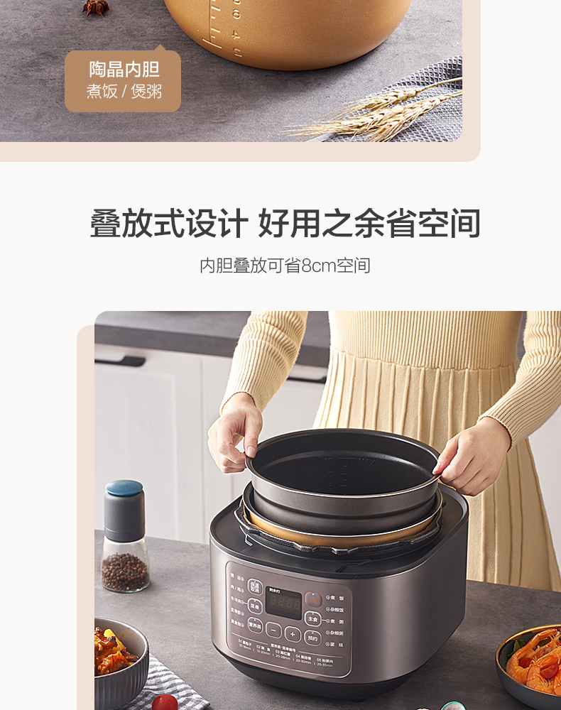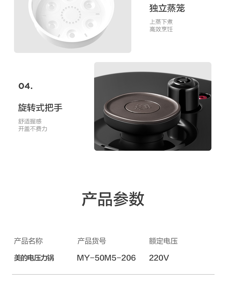 电压力锅MY-50M5-206精控火候金属机身高压快煮电高压锅瓷晶