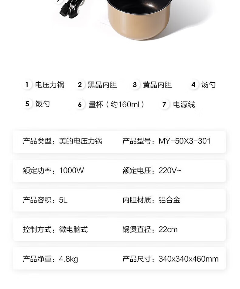 电压力锅MY-50X3-301不粘锅多功能70KPA烧汤烧饭煮粥预约