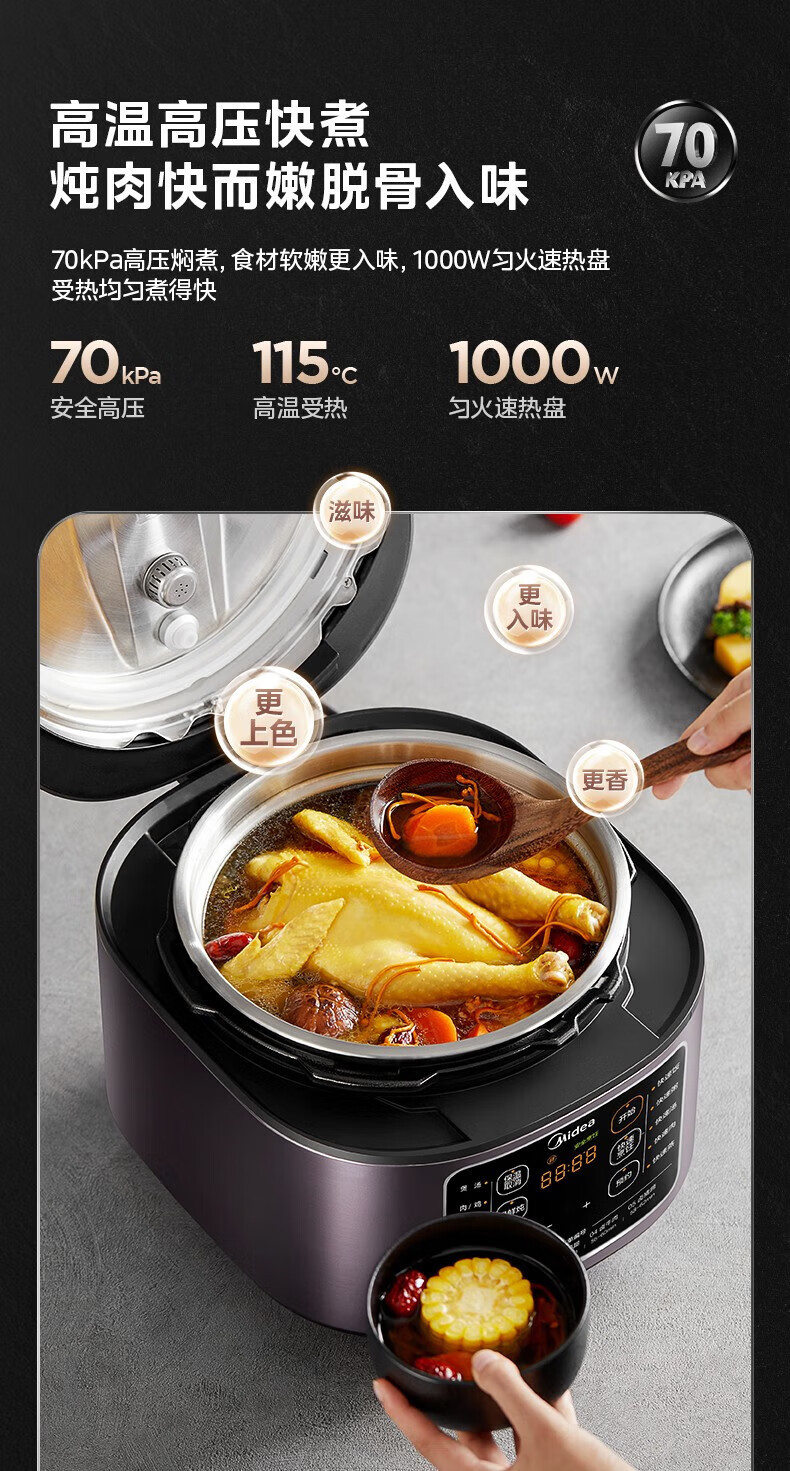 (Midea)电压力锅YLC540G压力锅电高压锅多功能开盖煮智能