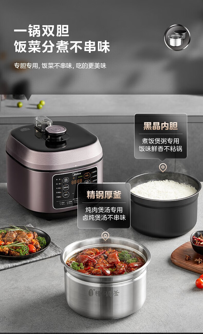 电压力锅家用5升高压锅一锅双胆多功能智能预约0涂层煮饭煲汤