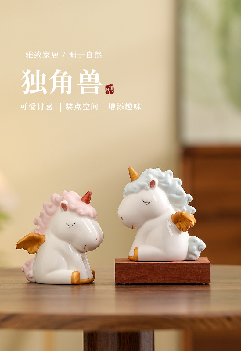 创意北欧独角兽轻奢家居软装饰桌面酒柜办公室玄关陶瓷小摆件礼物