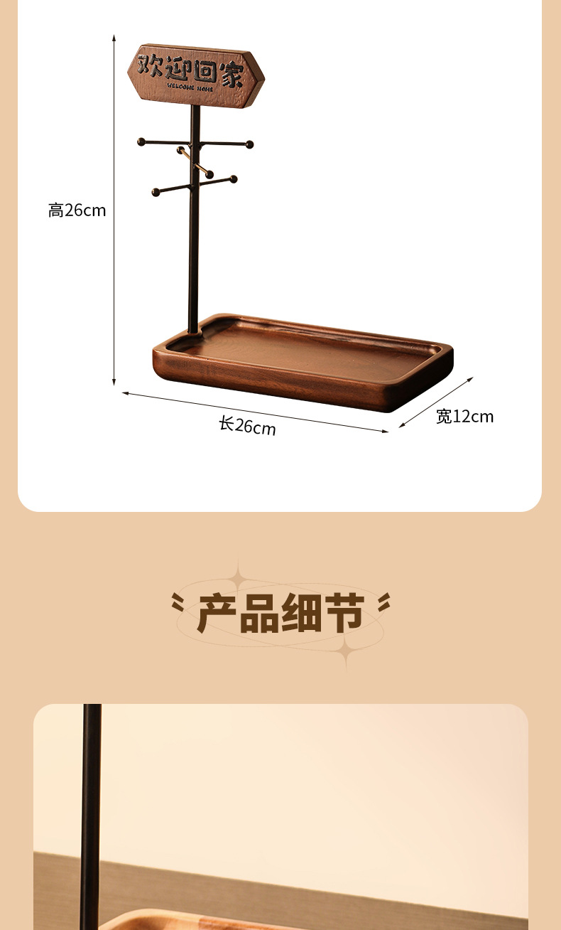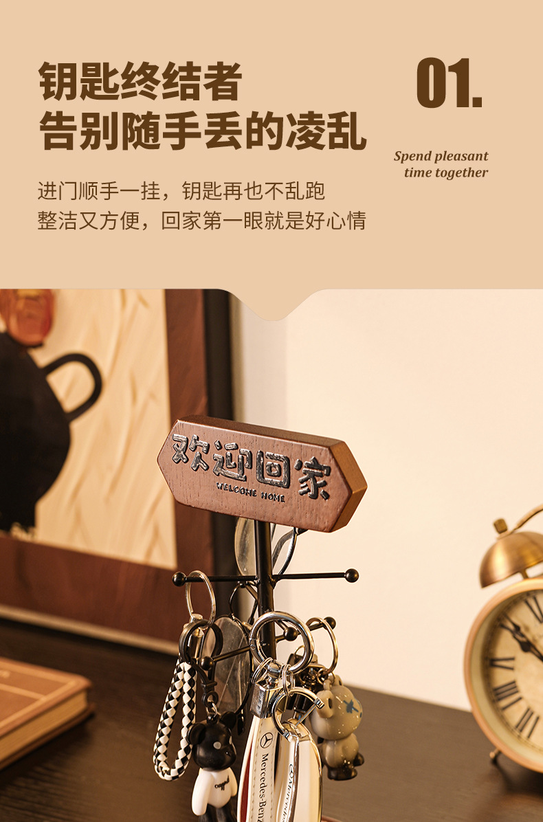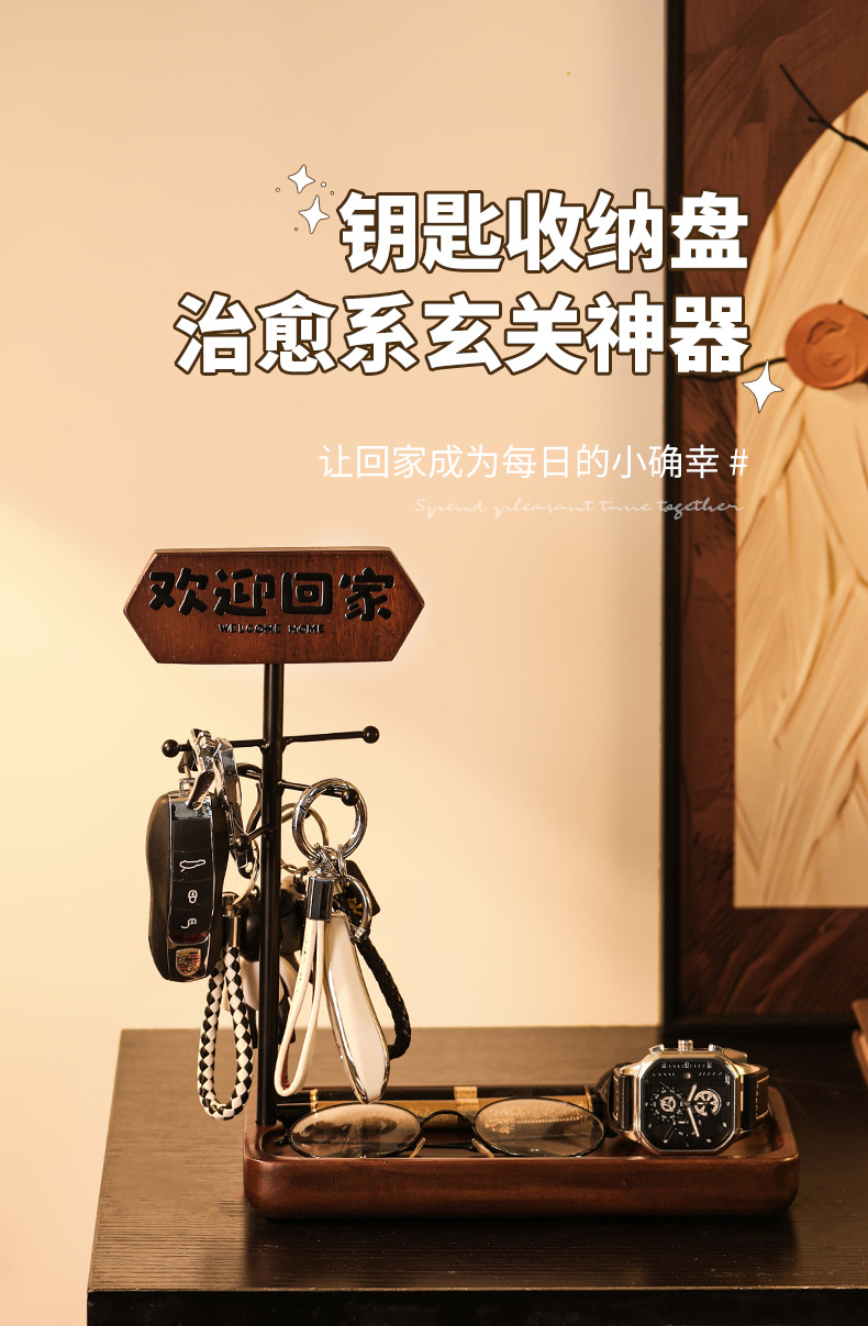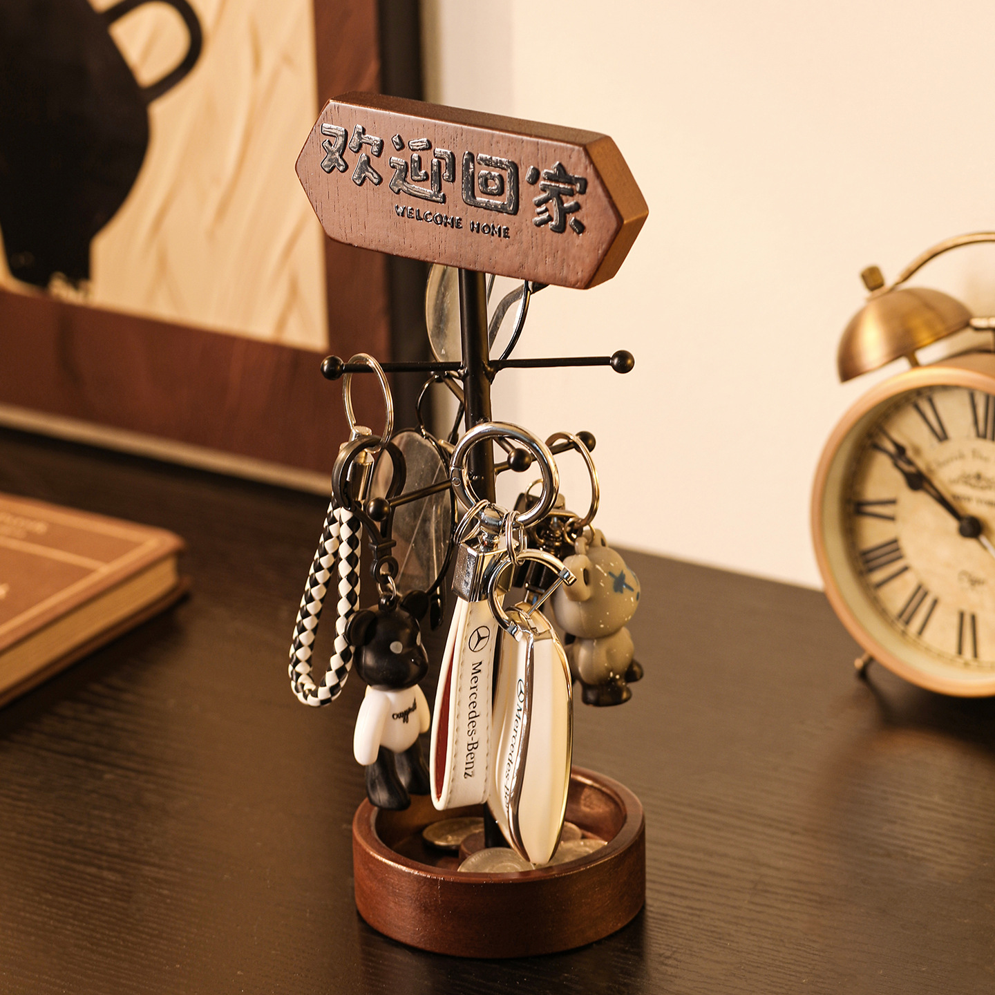 中古风欢迎回家入户玄关钥匙收纳装饰摆件轻奢高档客厅桌面置物架