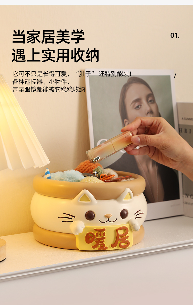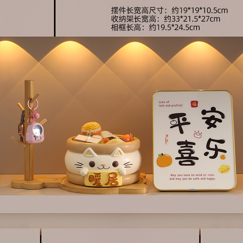 - 暖居猫饼收纳盒摆件+树杈+事事如意
