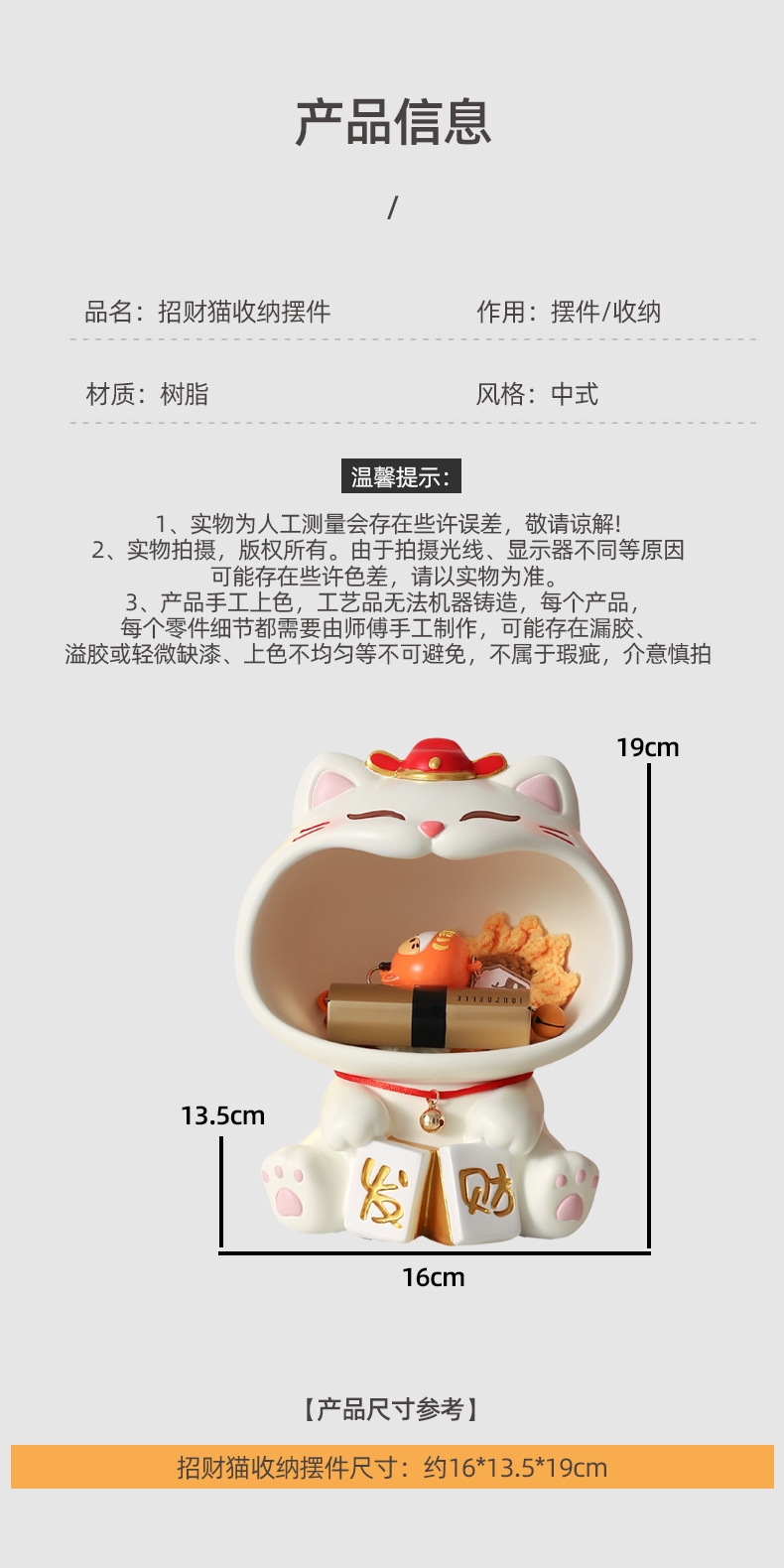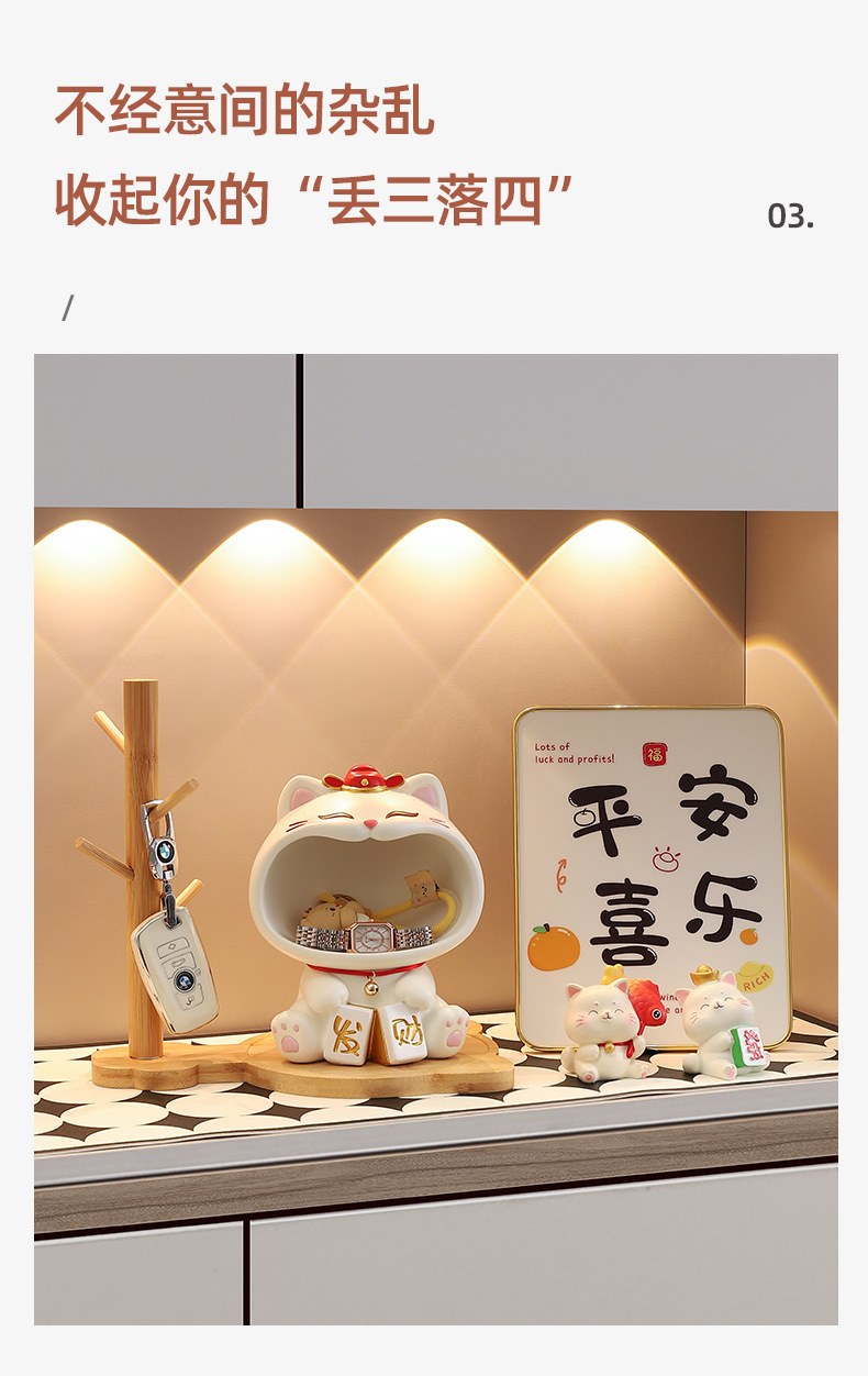 轻奢高档招大嘴财猫钥匙收纳桌面摆件乔迁新房客厅家居装饰品礼品