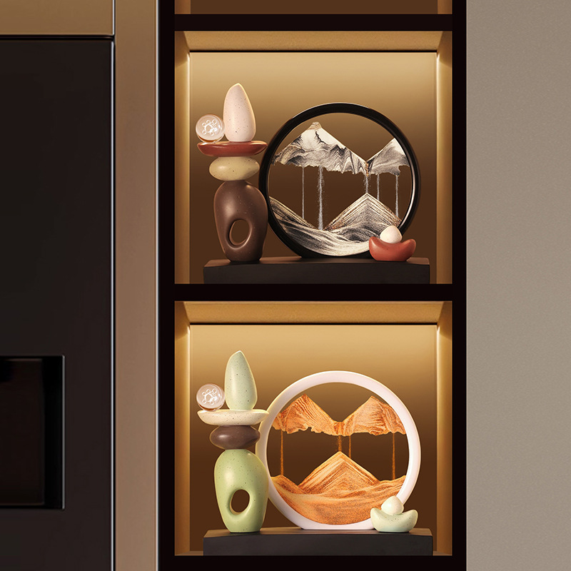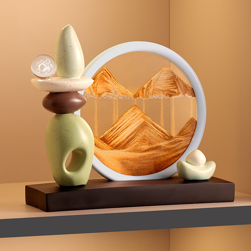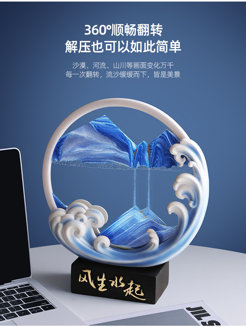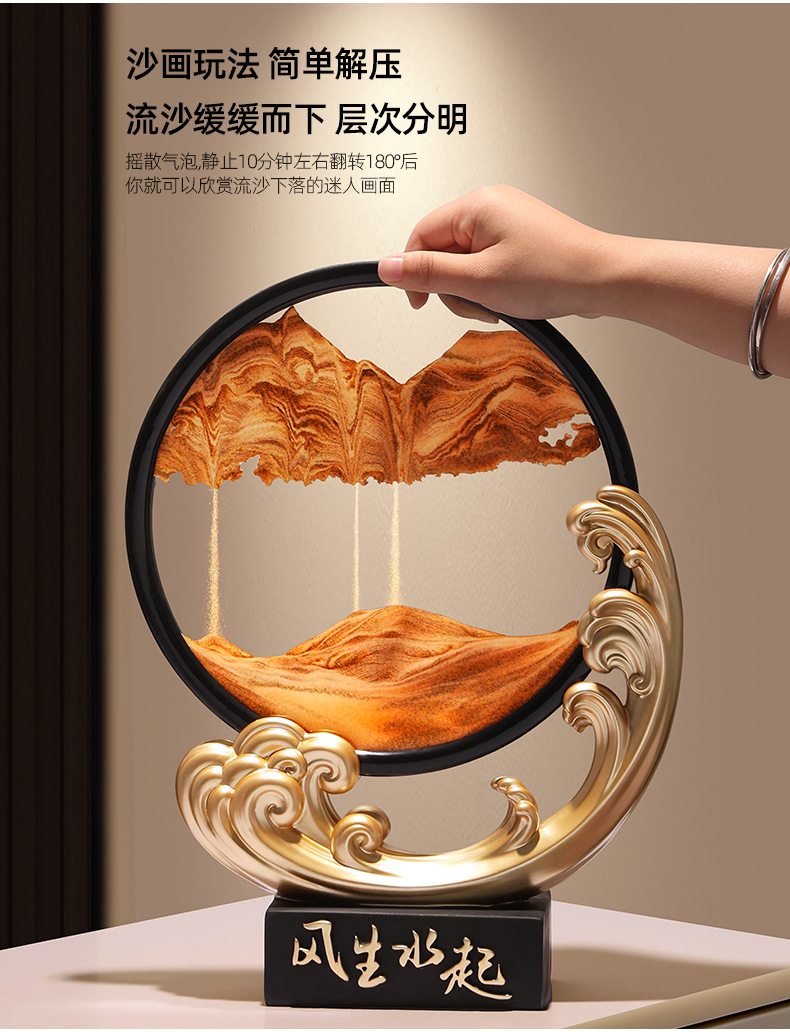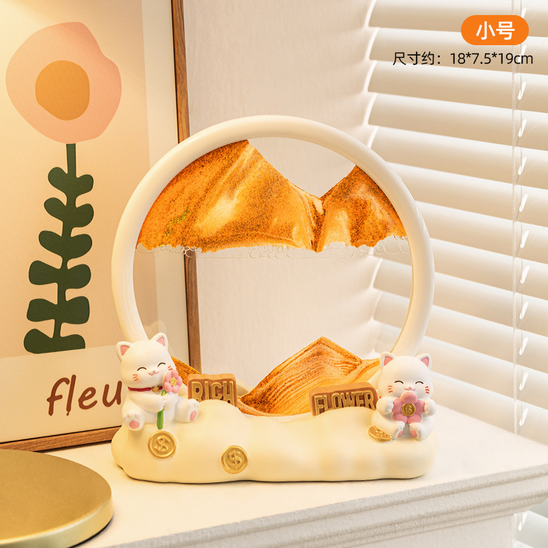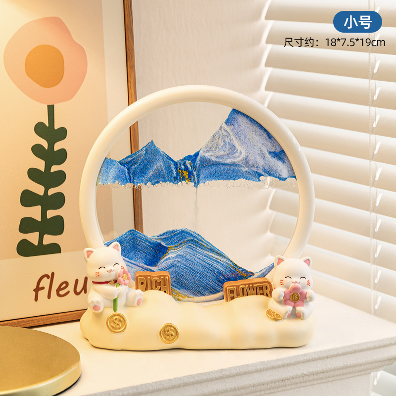 “有钱花”招财猫流沙摆件【12寸白框青云直上】