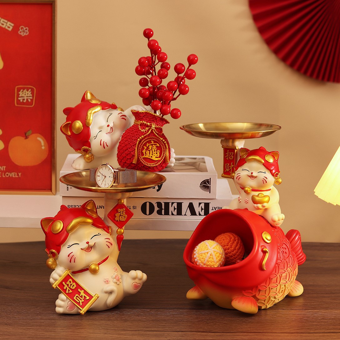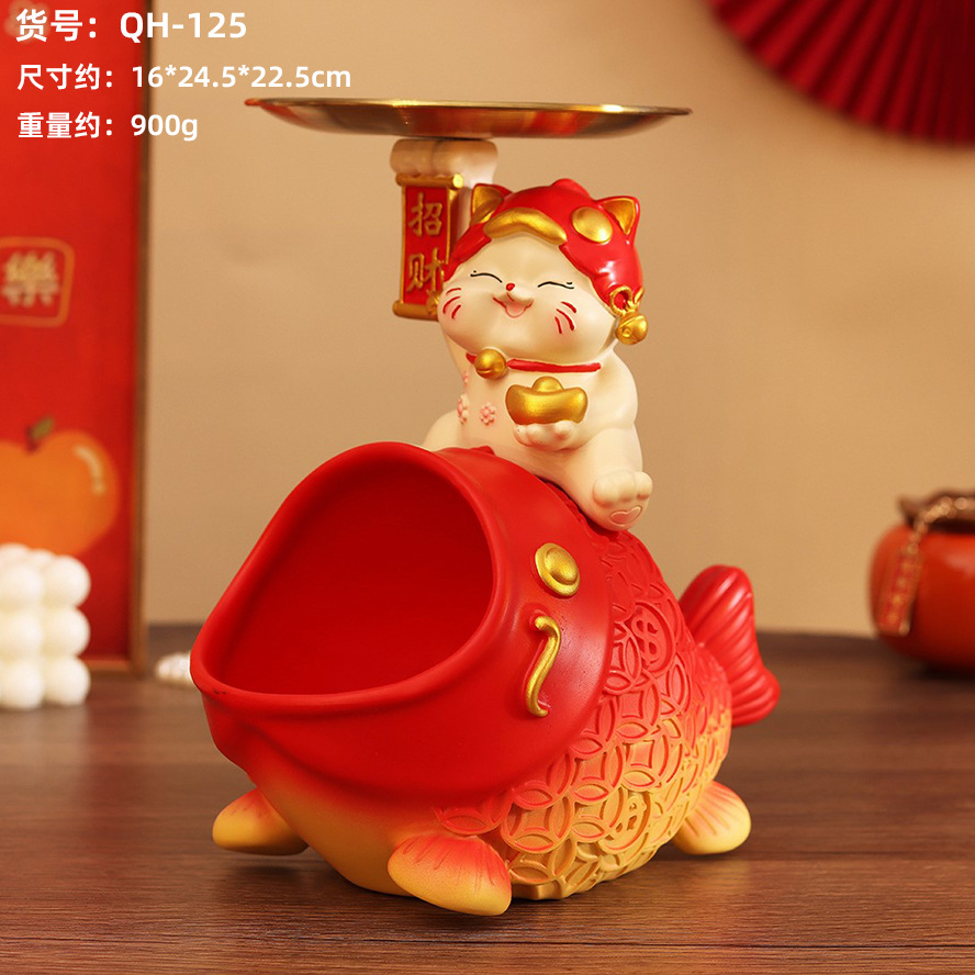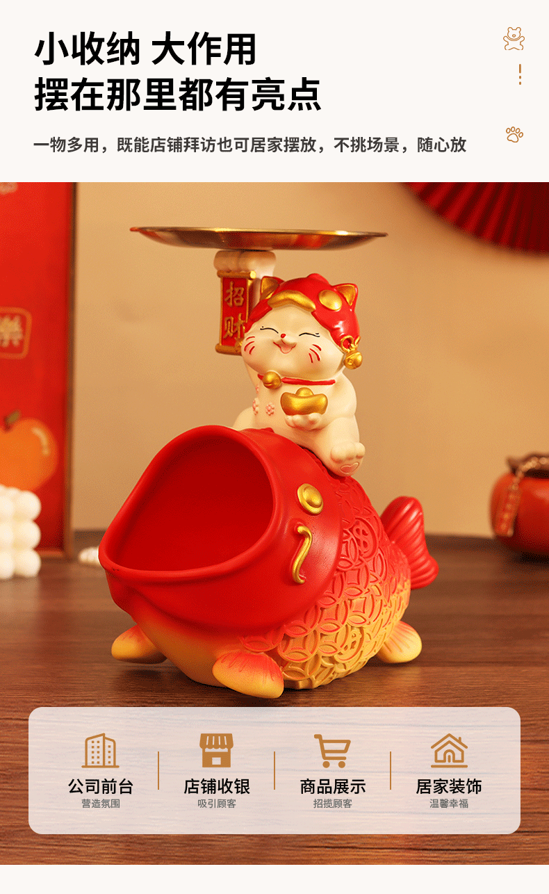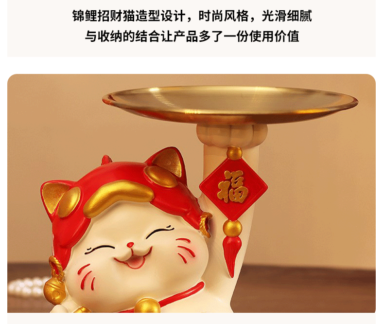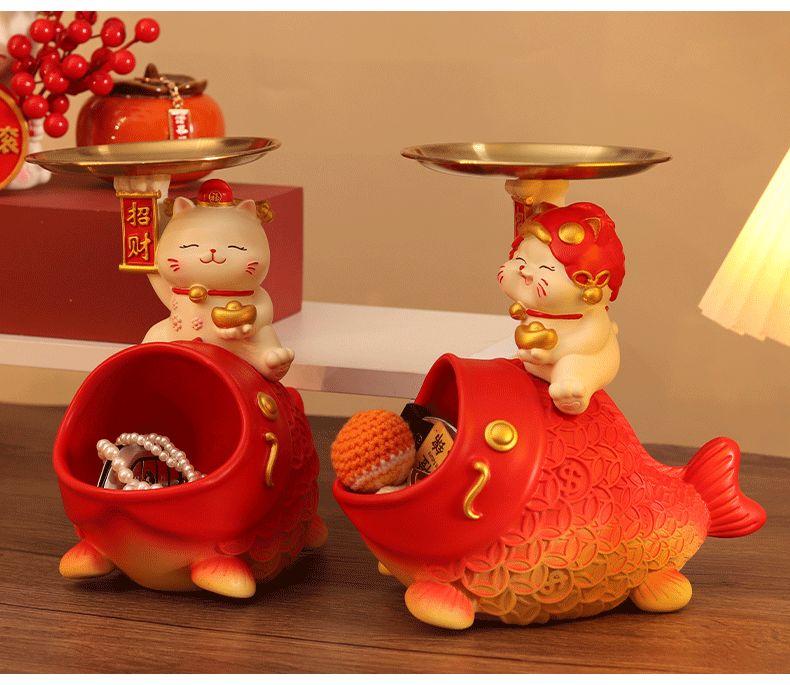 锦鲤招财猫玄关钥匙收纳摆件家居客厅新居乔迁装饰树脂工艺品礼物