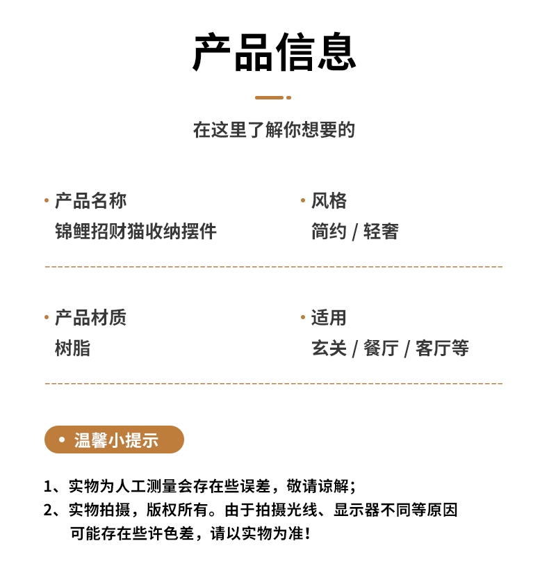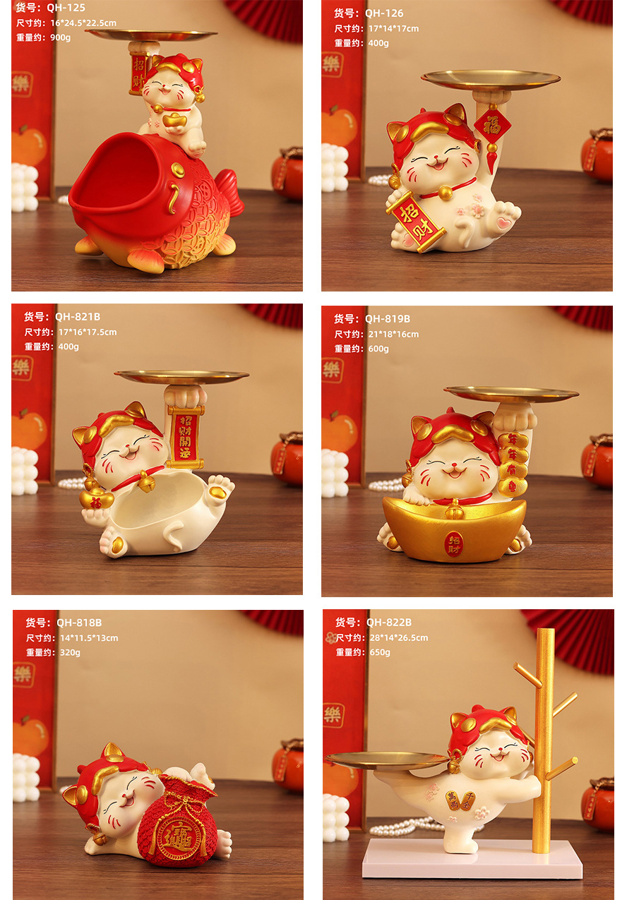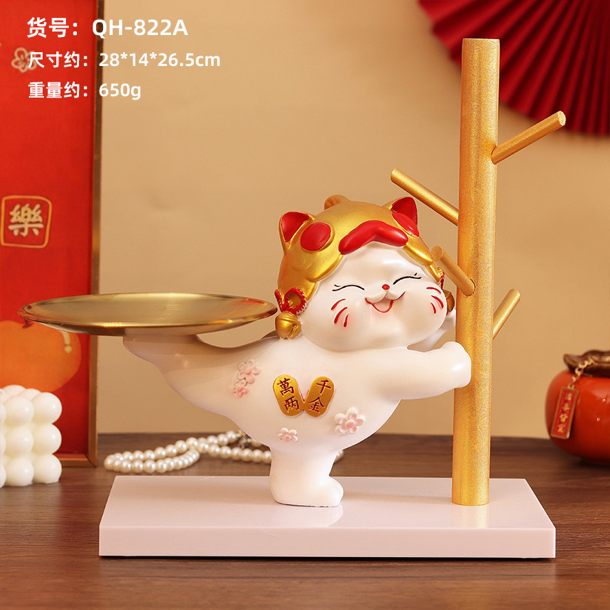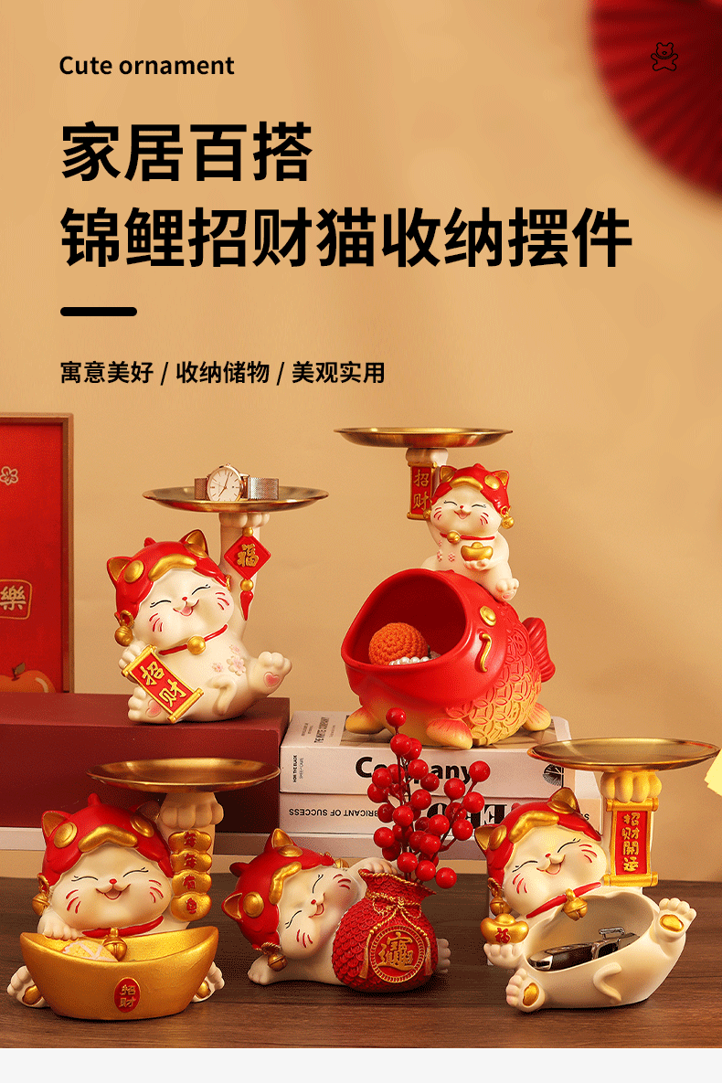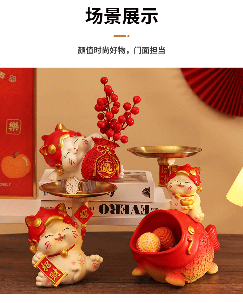 锦鲤招财猫玄关钥匙收纳摆件家居客厅新居乔迁装饰树脂工艺品礼物