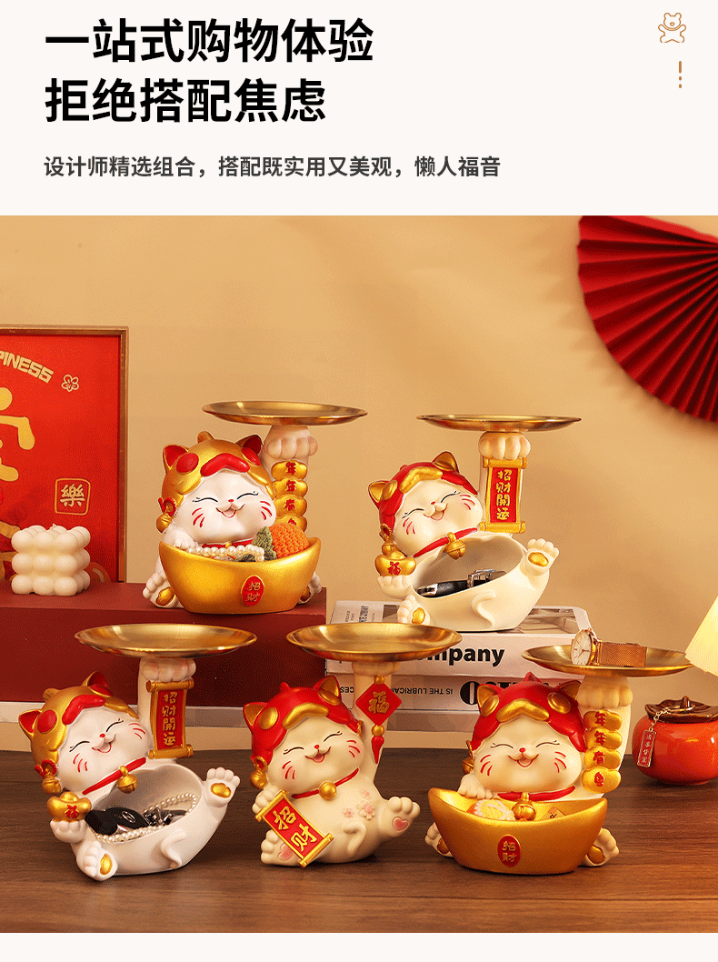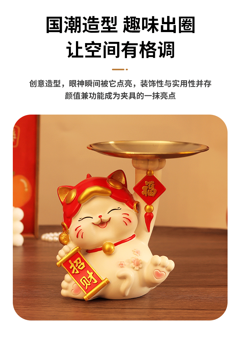 招财猫入户门口玄关钥匙收纳摆件客厅鞋柜家居装饰品乔迁新居礼品