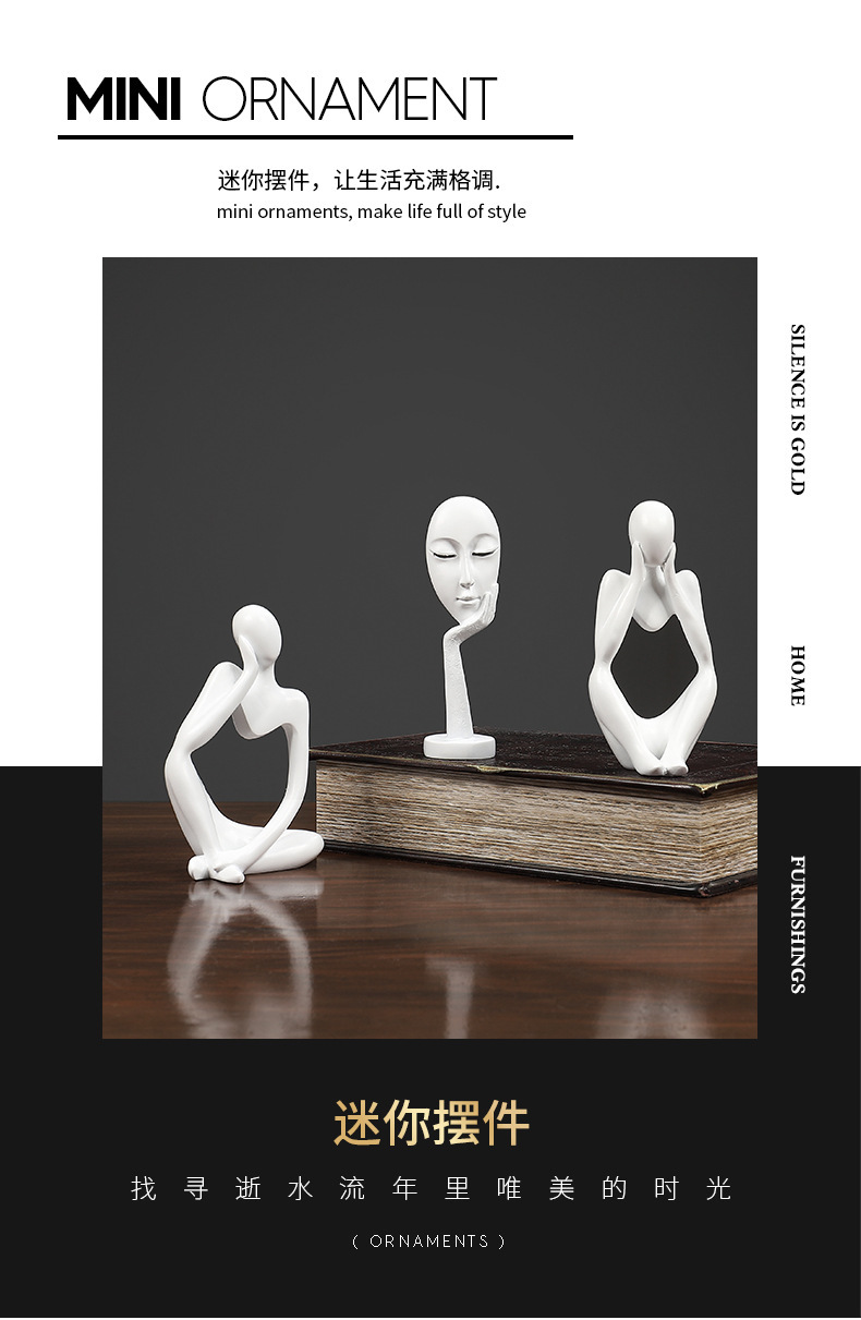 北欧ins风思考者树脂家居装饰品摆件客厅迷你抽象创意桌面工艺品