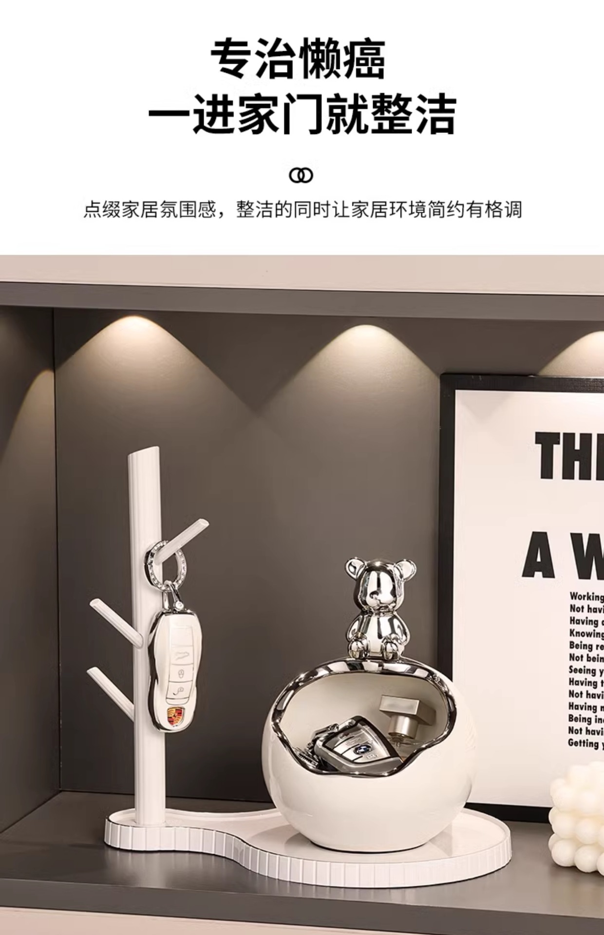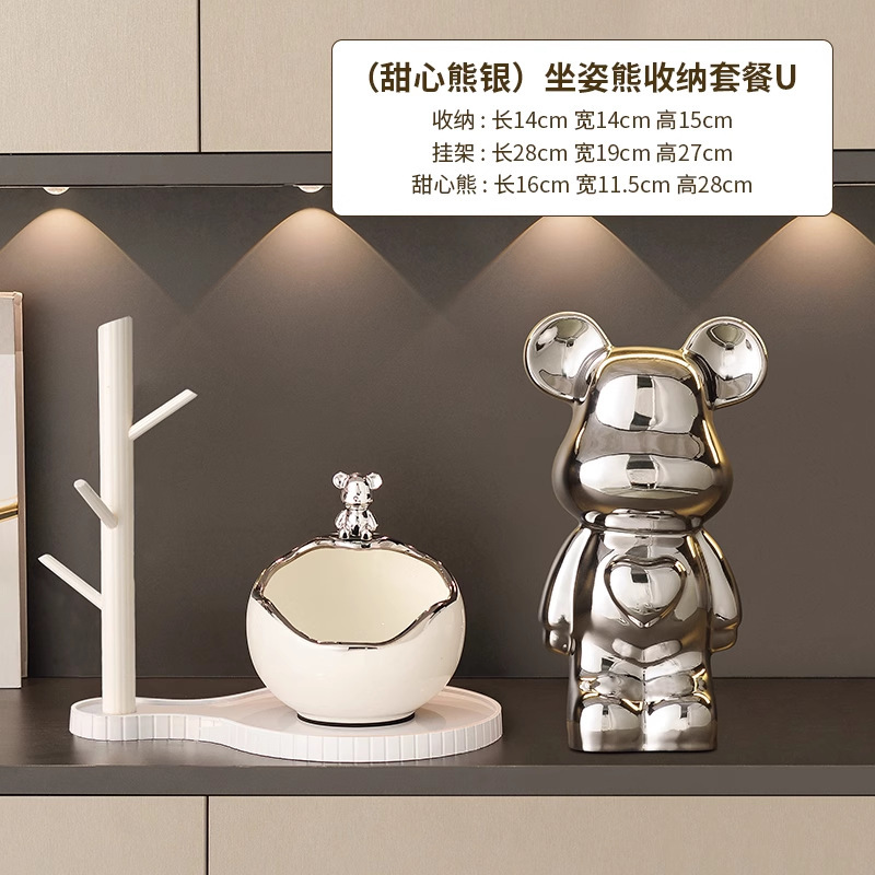 波浪口收纳-白银小熊(小号)玄关柜5件套C