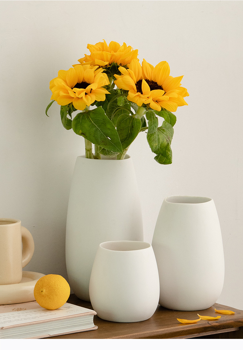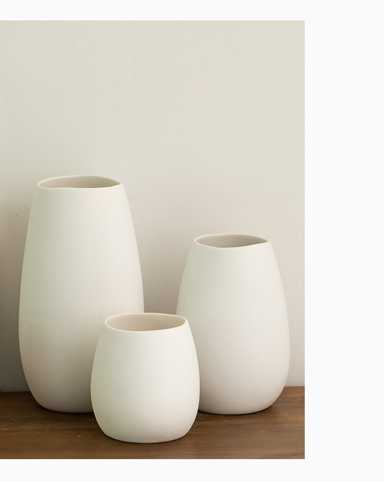 蜀门白色北欧创意陶瓷三件套装饰干花鲜花花瓶餐桌客厅插花摆件