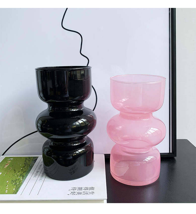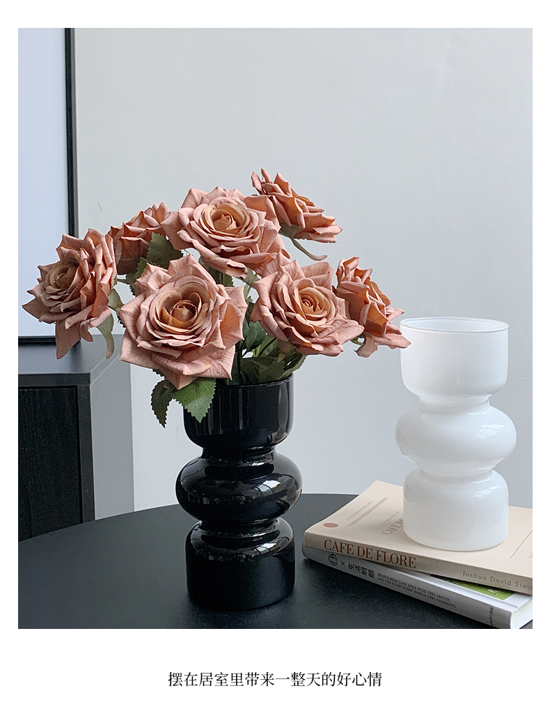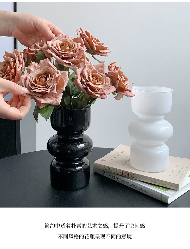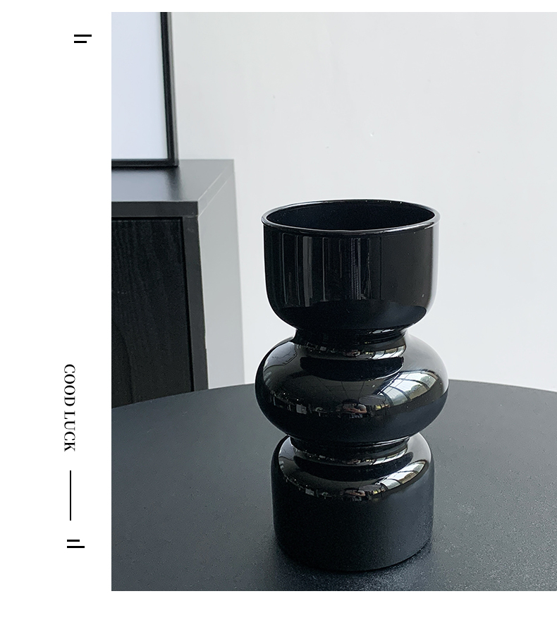 简约中古玻璃花瓶黑色水养鲜花客厅创意高级装饰干花插花摆件