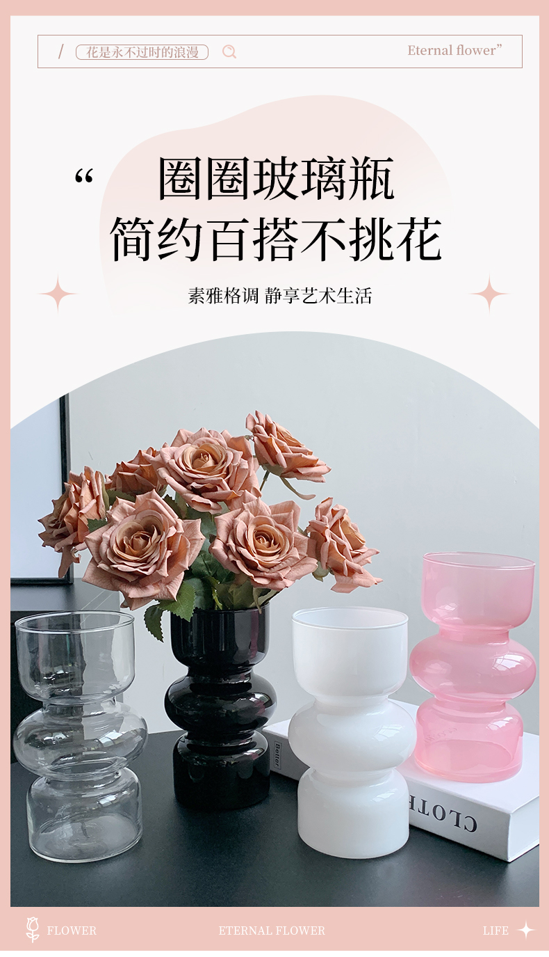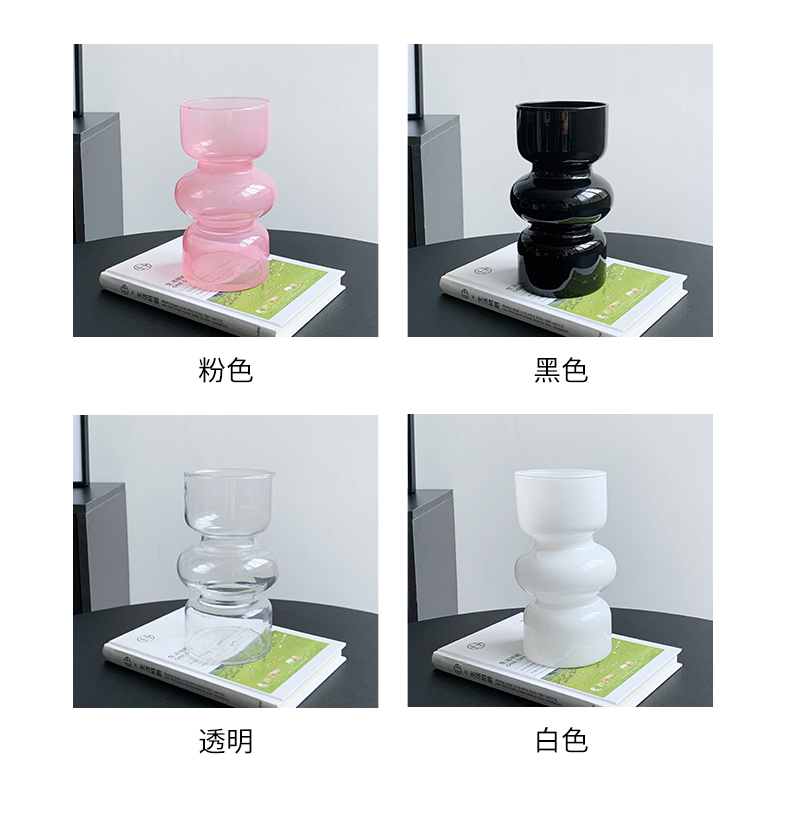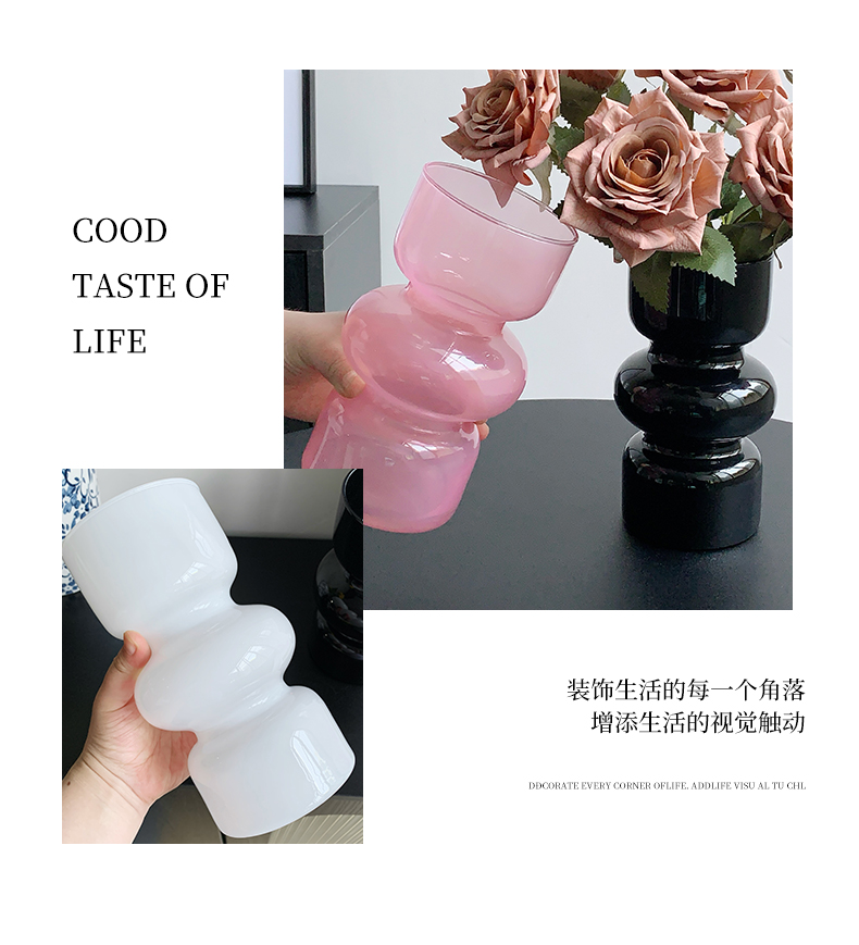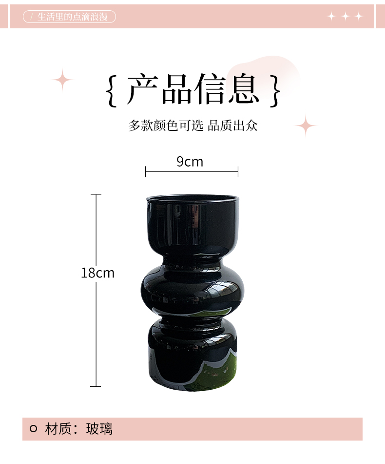 简约中古玻璃花瓶黑色水养鲜花客厅创意高级装饰干花插花摆件