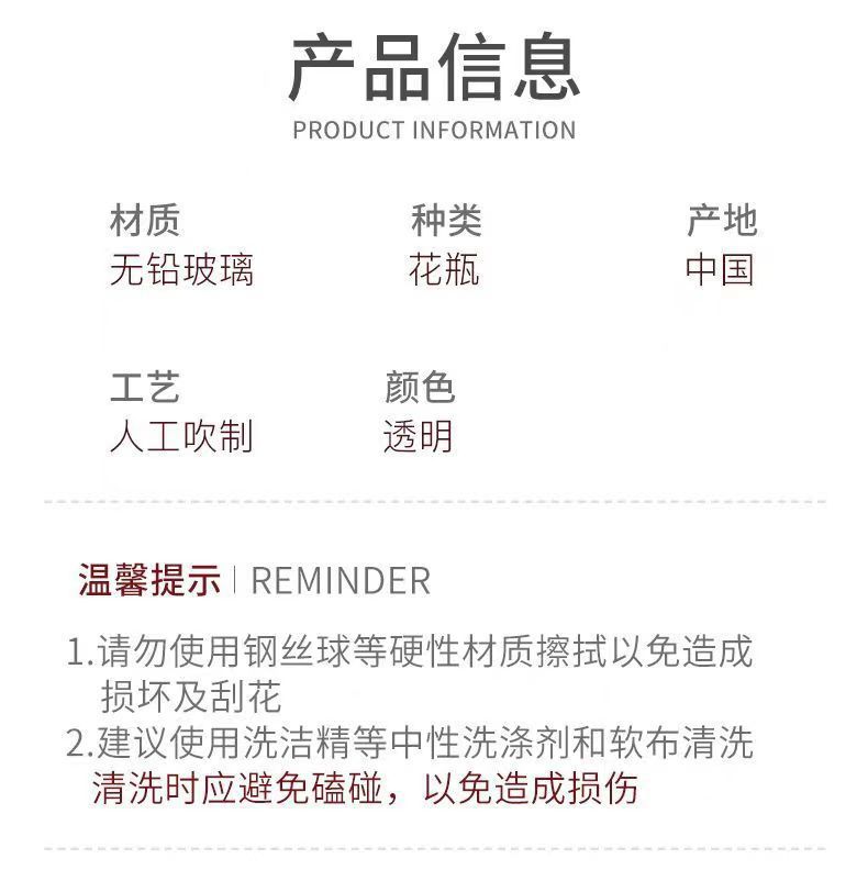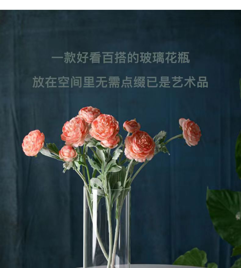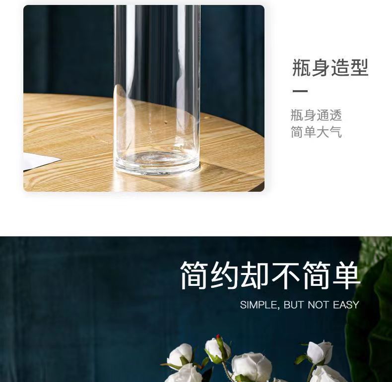 网红透明直筒玻璃花瓶大号简约卧室桌面客厅餐桌鲜花插花