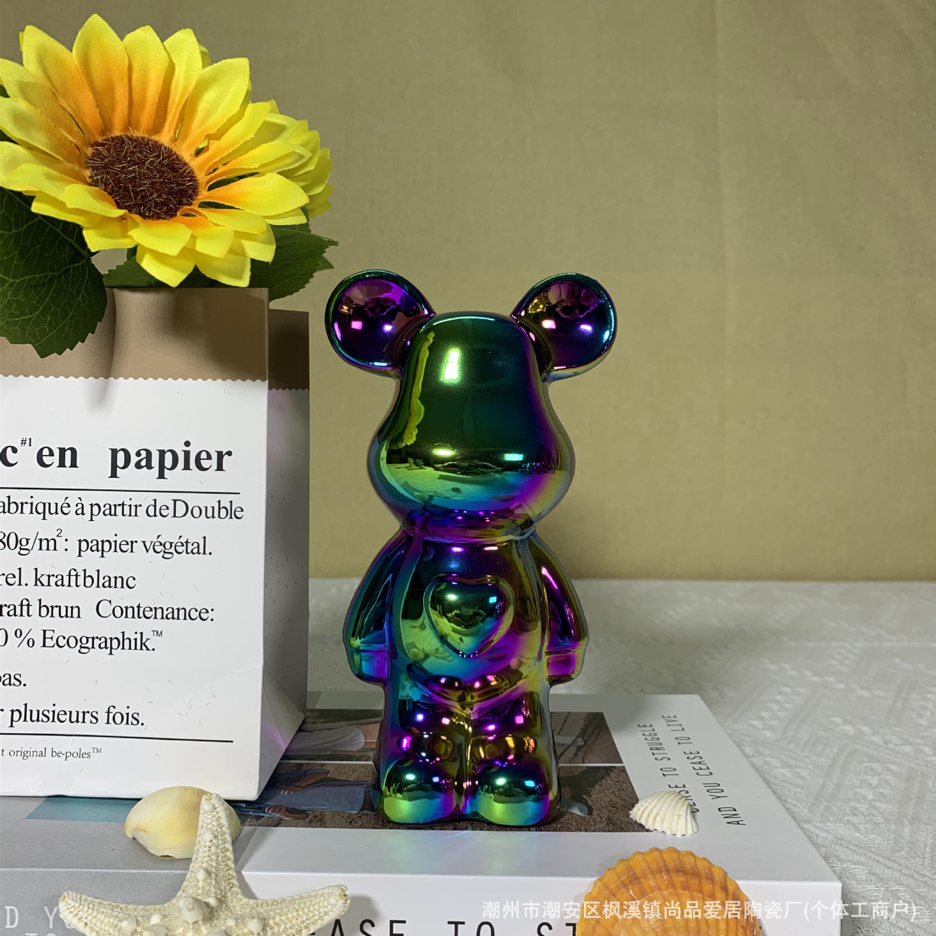 中式暴力熊摆件高档陶瓷客厅玄关电视柜酒柜存钱罐家居装饰品送礼