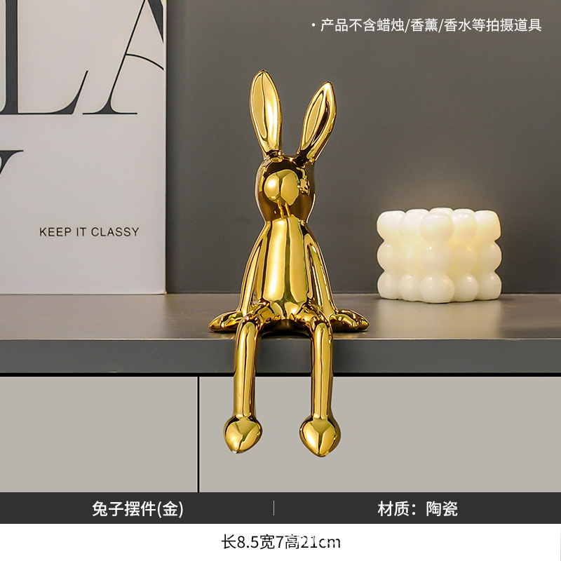 创意网红兔子摆件家居客厅玄关电视柜酒柜办公室装饰品样板间摆设
