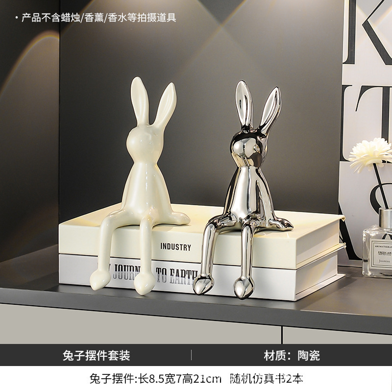 长耳兔摆件(银色+白色)【送仿真书*2随机款】