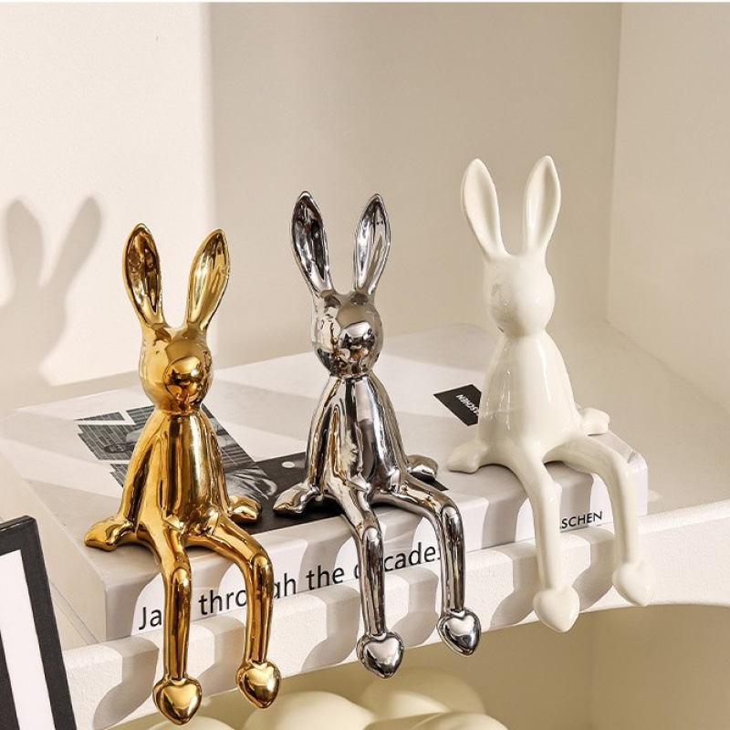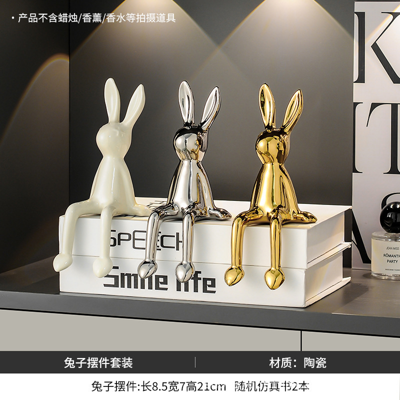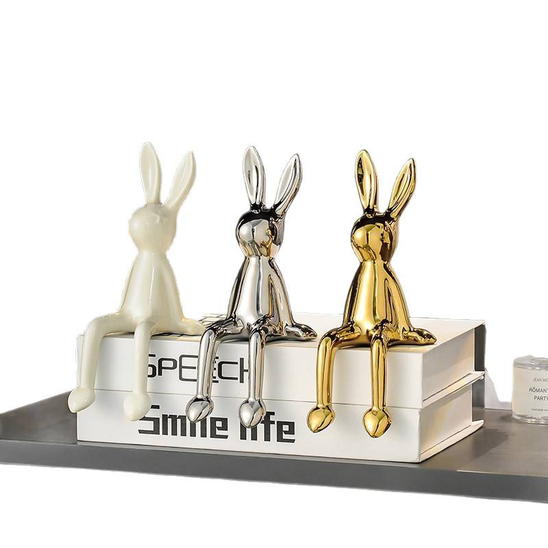 长耳兔摆件(白色+银色+金色)【送仿真书*2随机款】