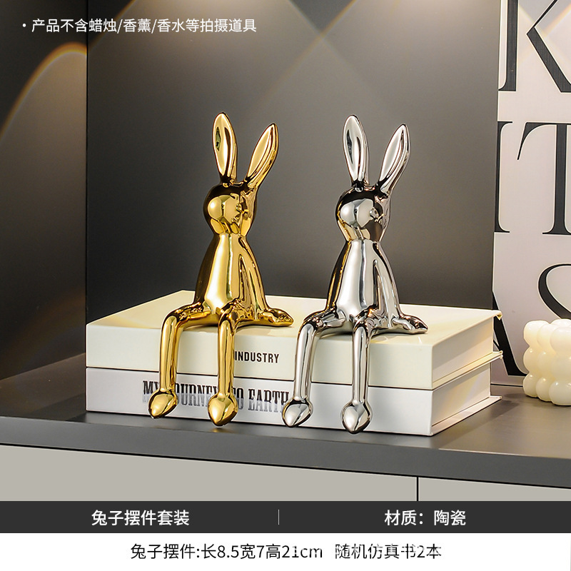 长耳兔摆件(金色+银色)【送仿真书*2随机款】