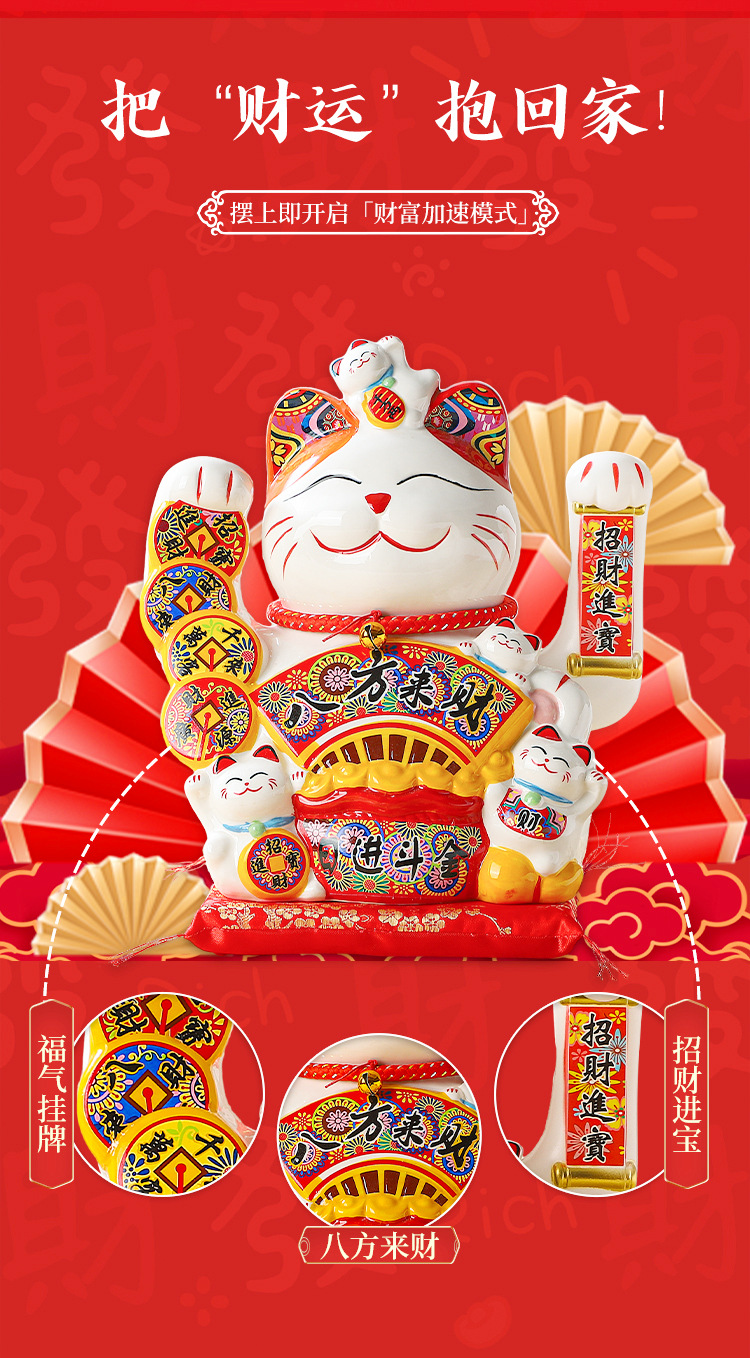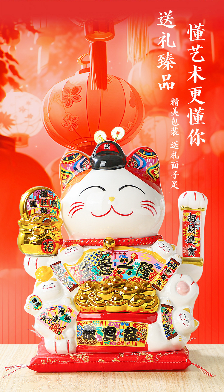 招财猫大号摇手摆件发财猫店铺家居装饰开业乔迁开运摇手发财猫
