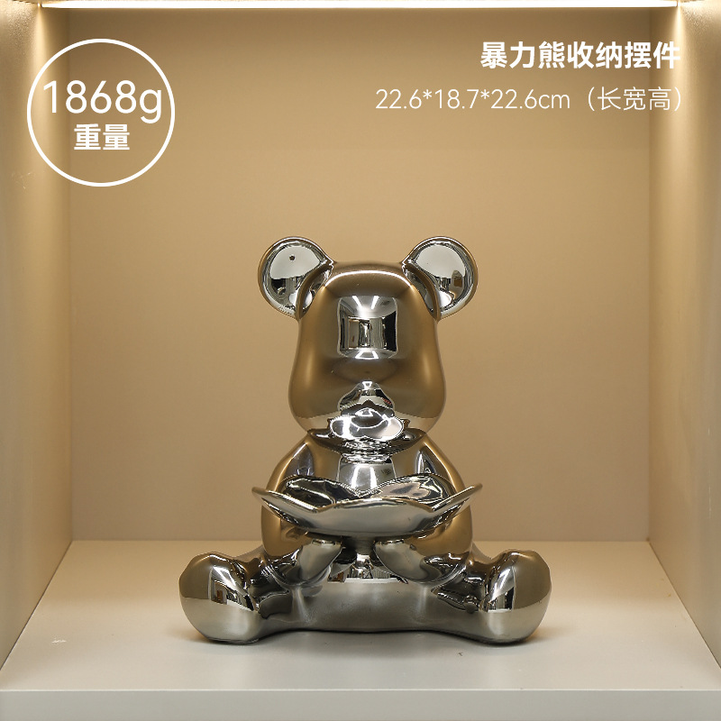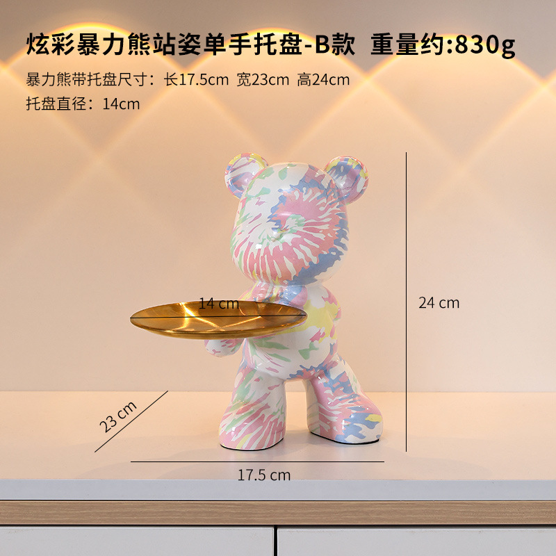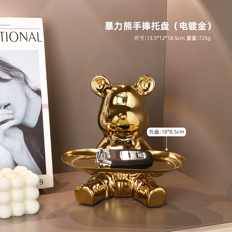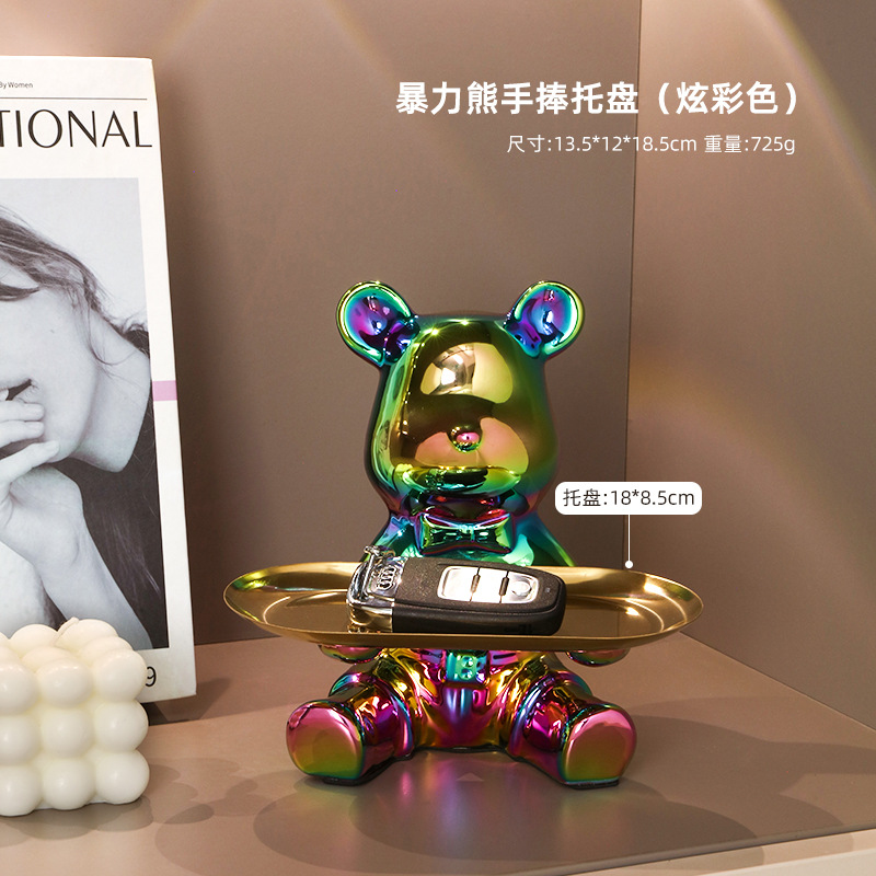 创意暴力熊钥匙收纳托盘茶几客厅进门玄关电视柜家居装饰品小摆件
