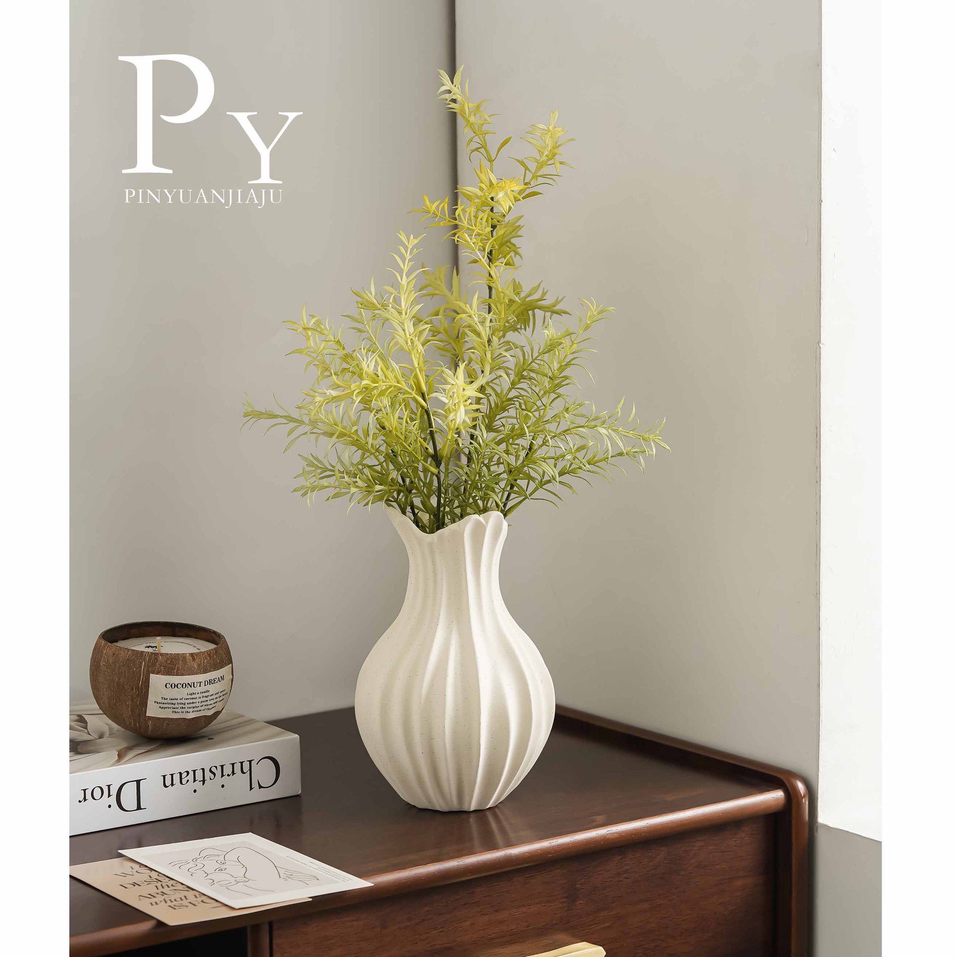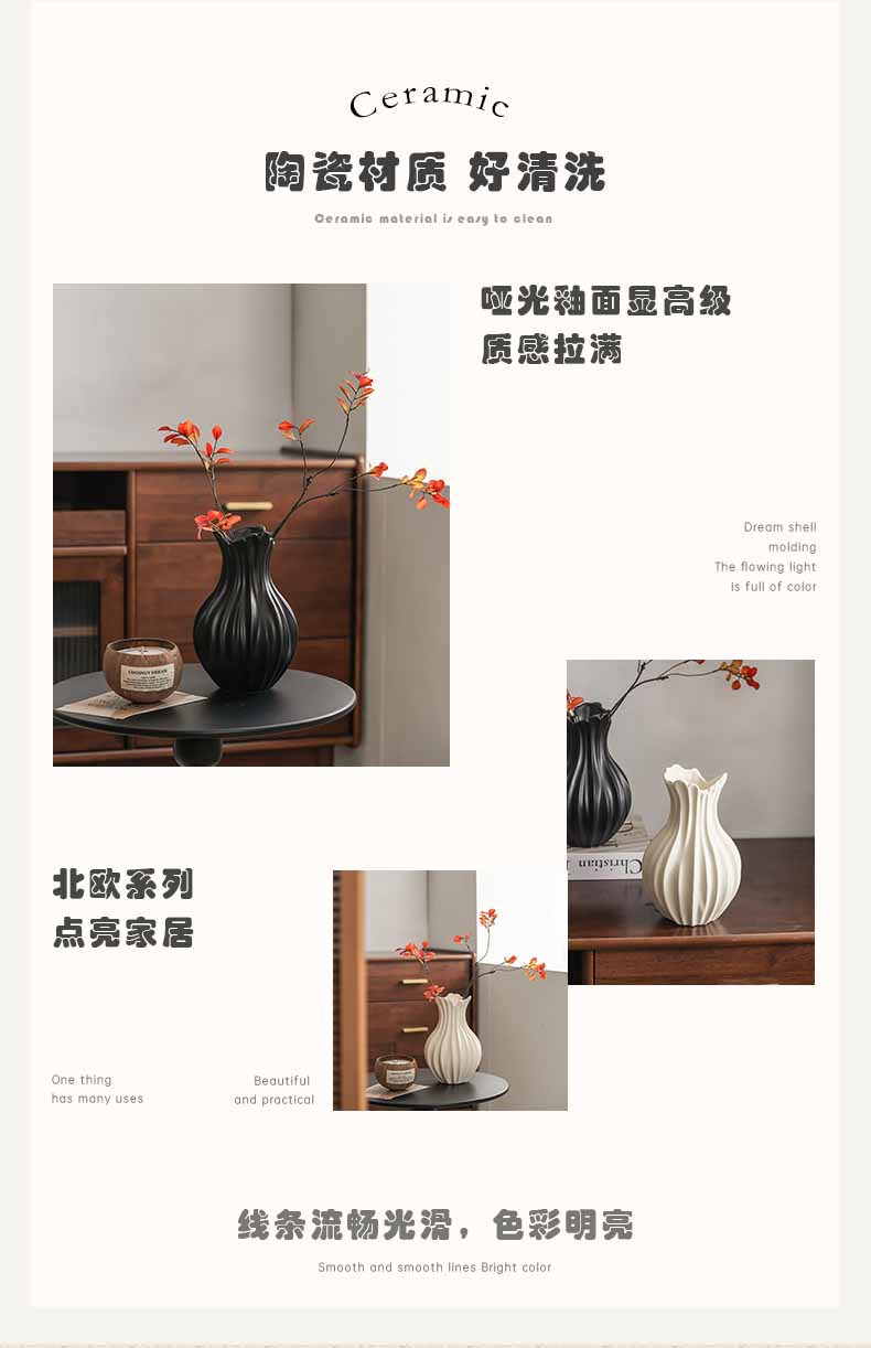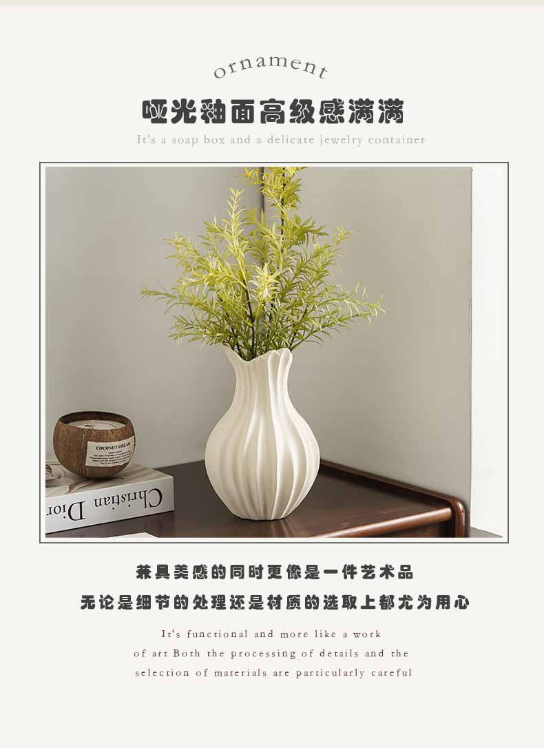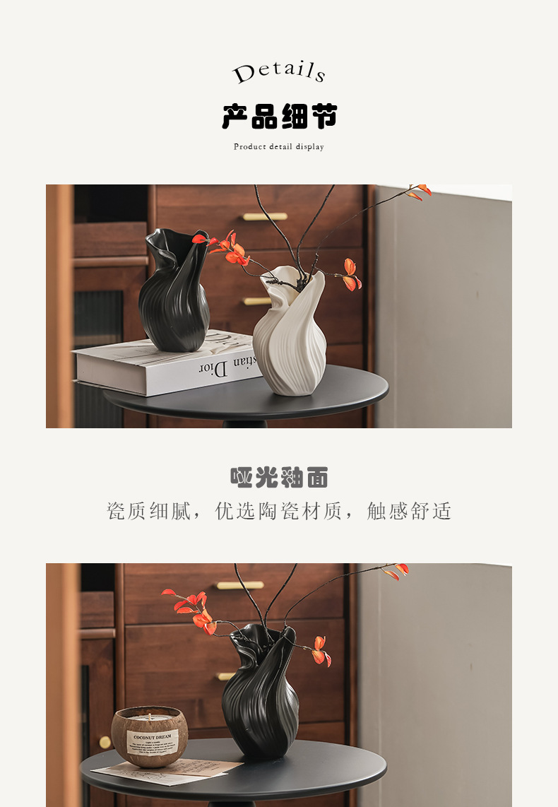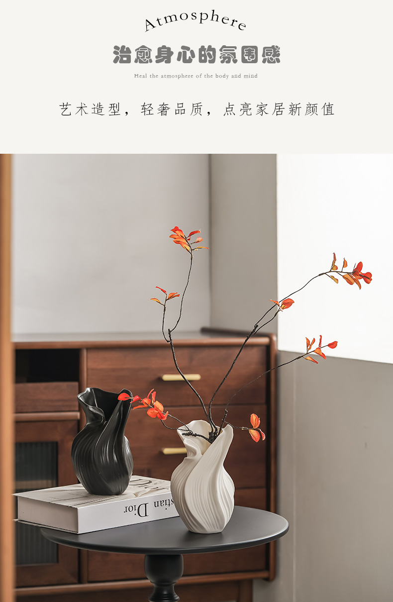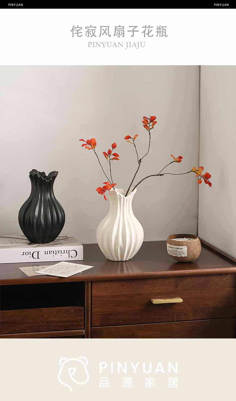 现代扇子陶瓷花瓶插花轻奢高级感侘寂风玄关客厅电视柜装饰品摆件