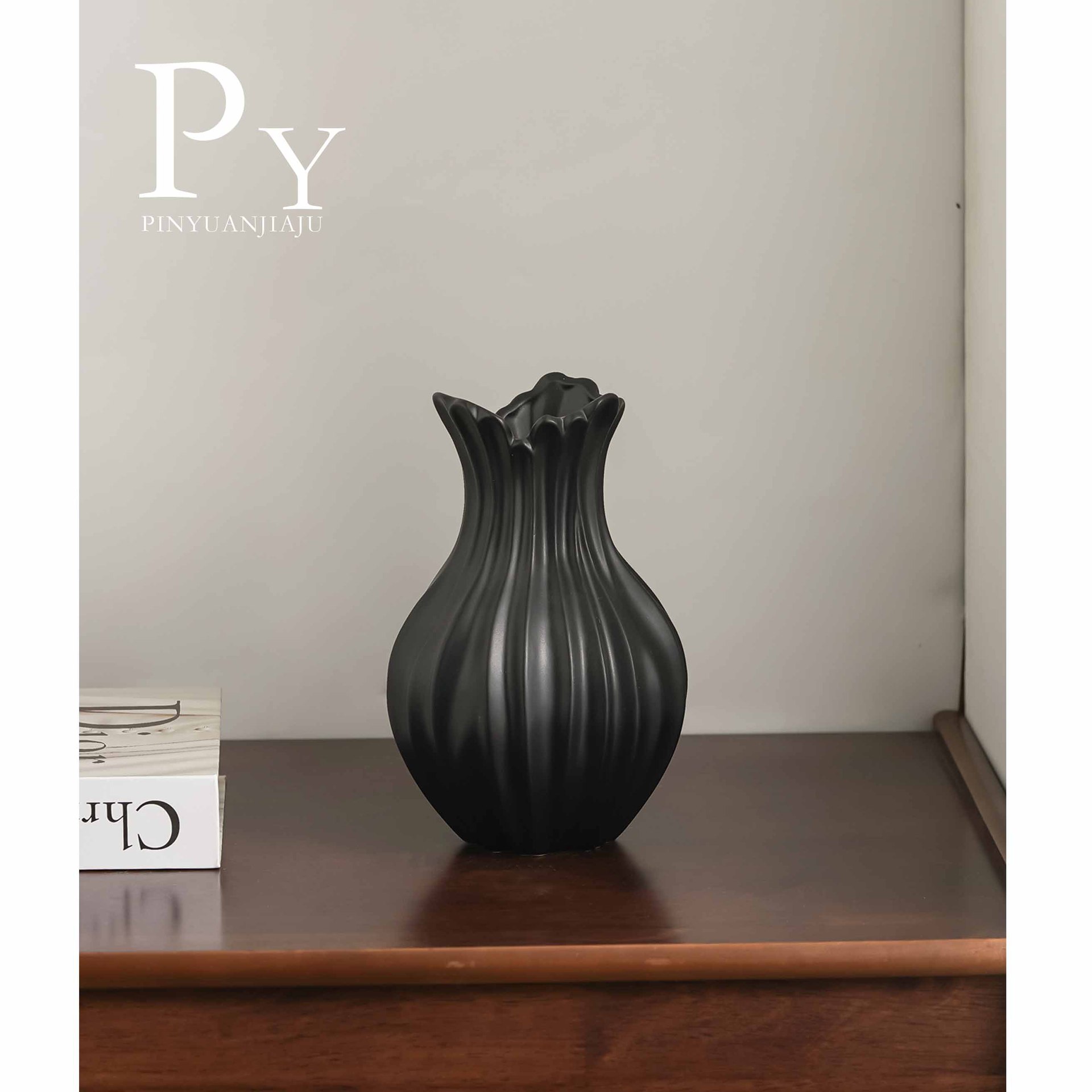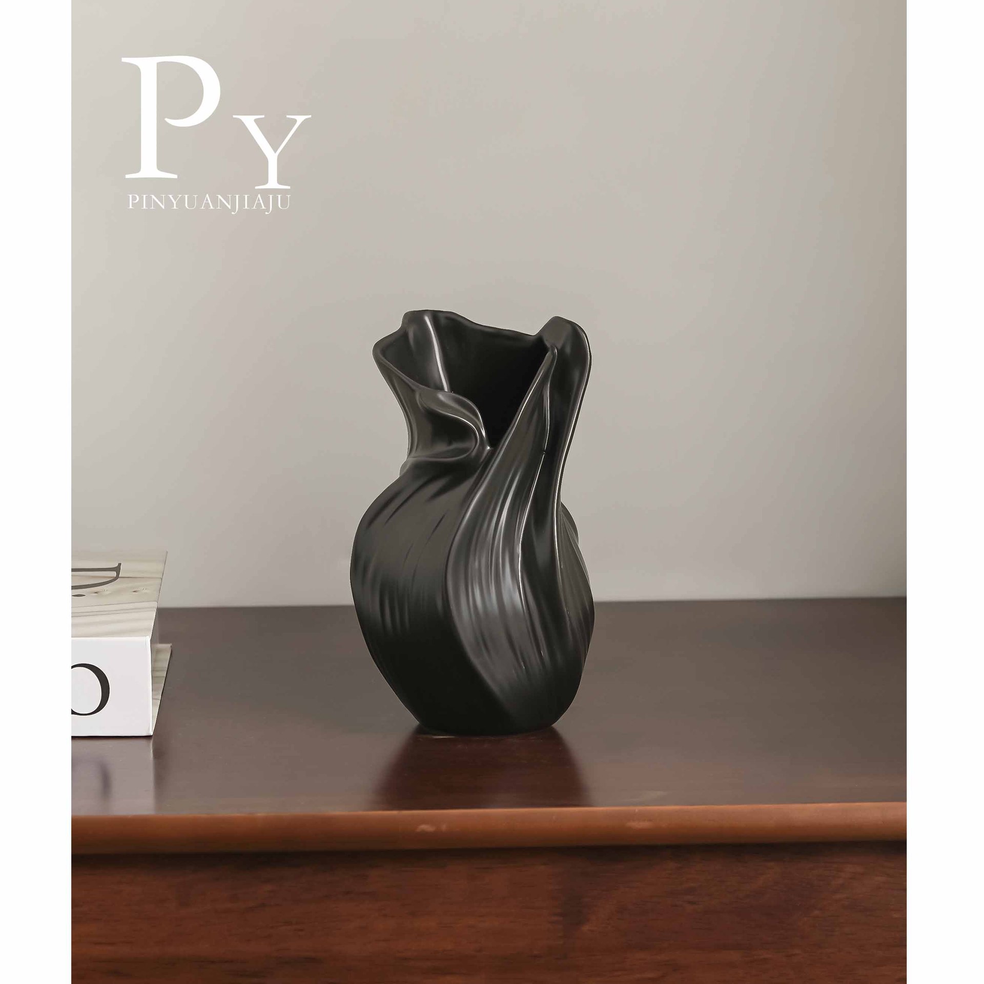 扇子花瓶-哑黑
