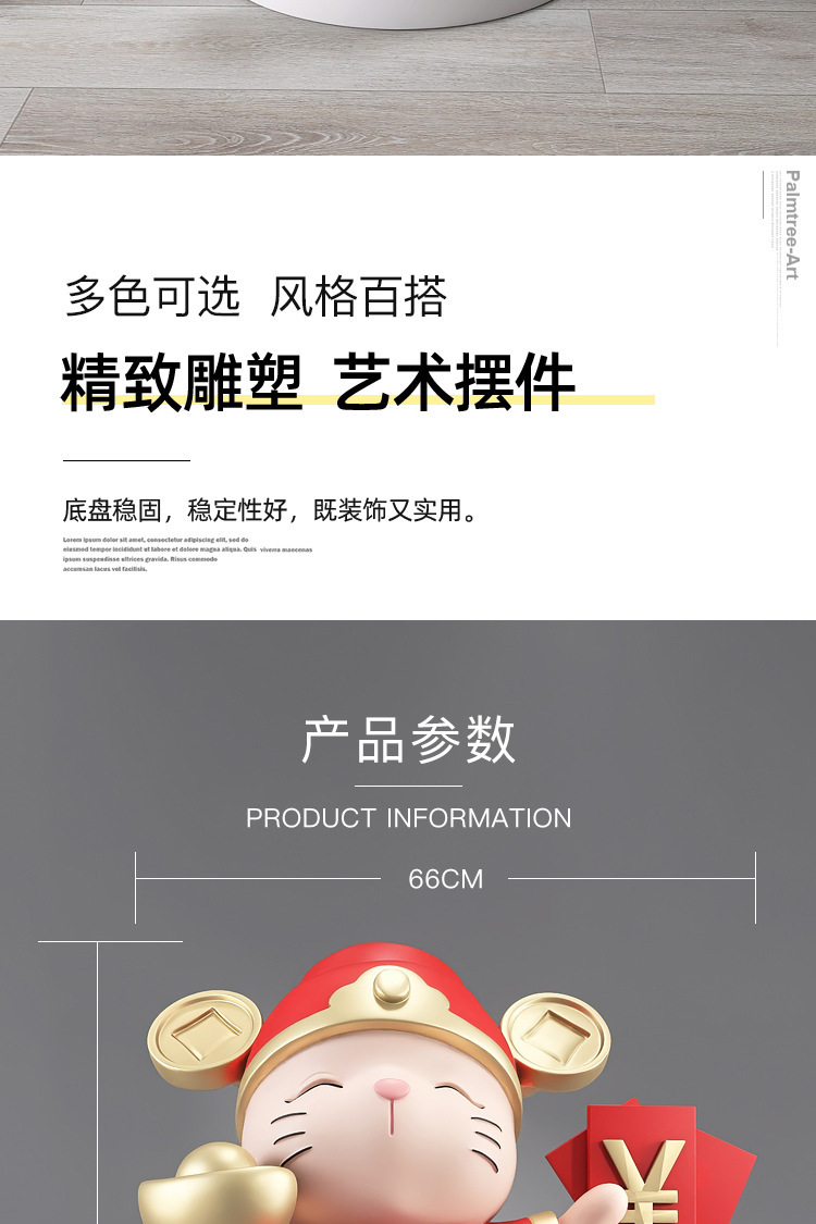 财神猫落地摆件-红色(高度80cm)