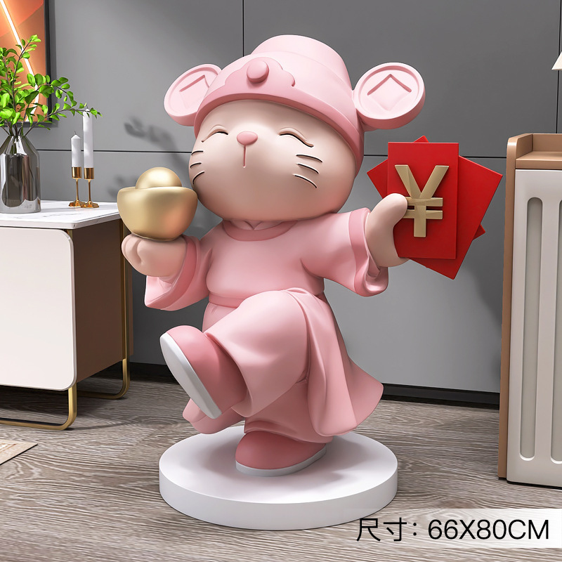 财神猫落地摆件-粉色(高度80cm)
