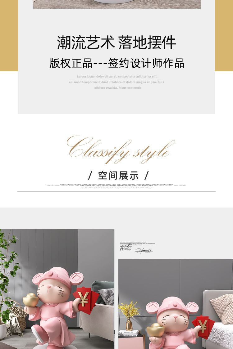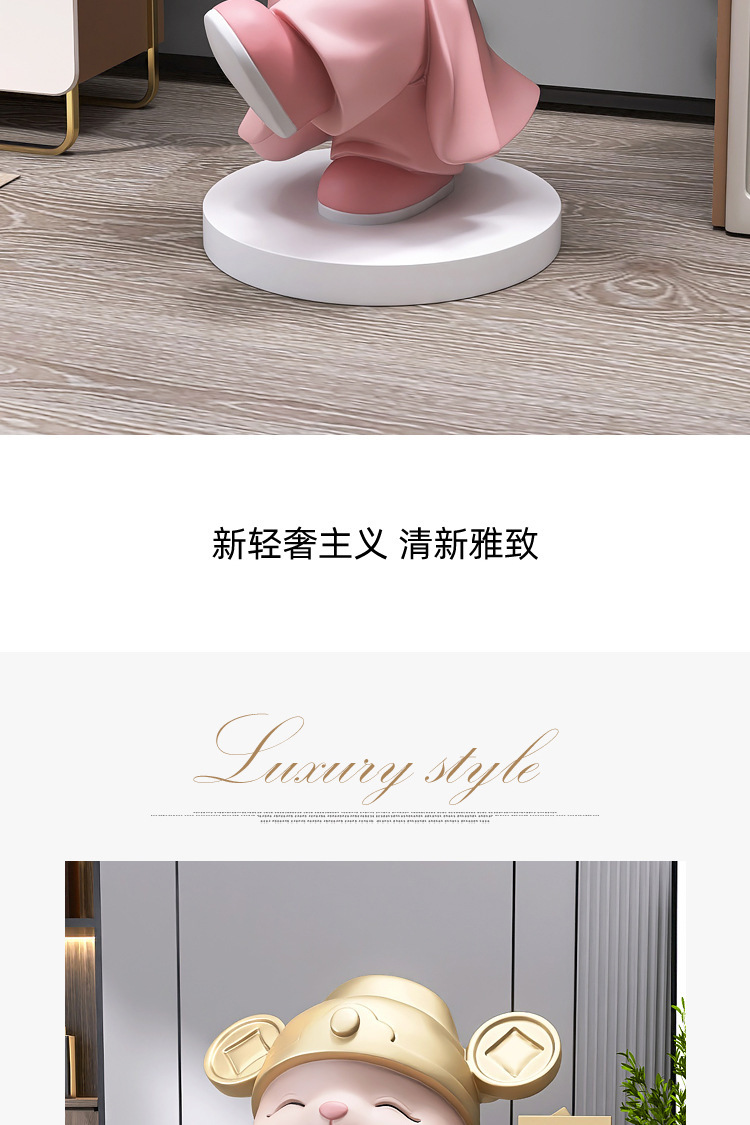 财神猫桌面摆件-粉色【高27cm】