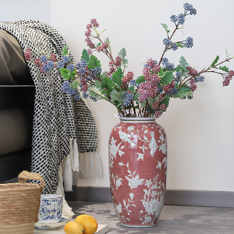 中式落地摆件高级感花瓶青花瓷电视柜玄关客厅装饰中古水培插花瓶