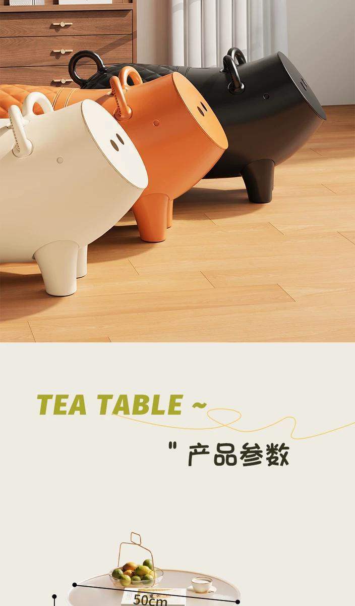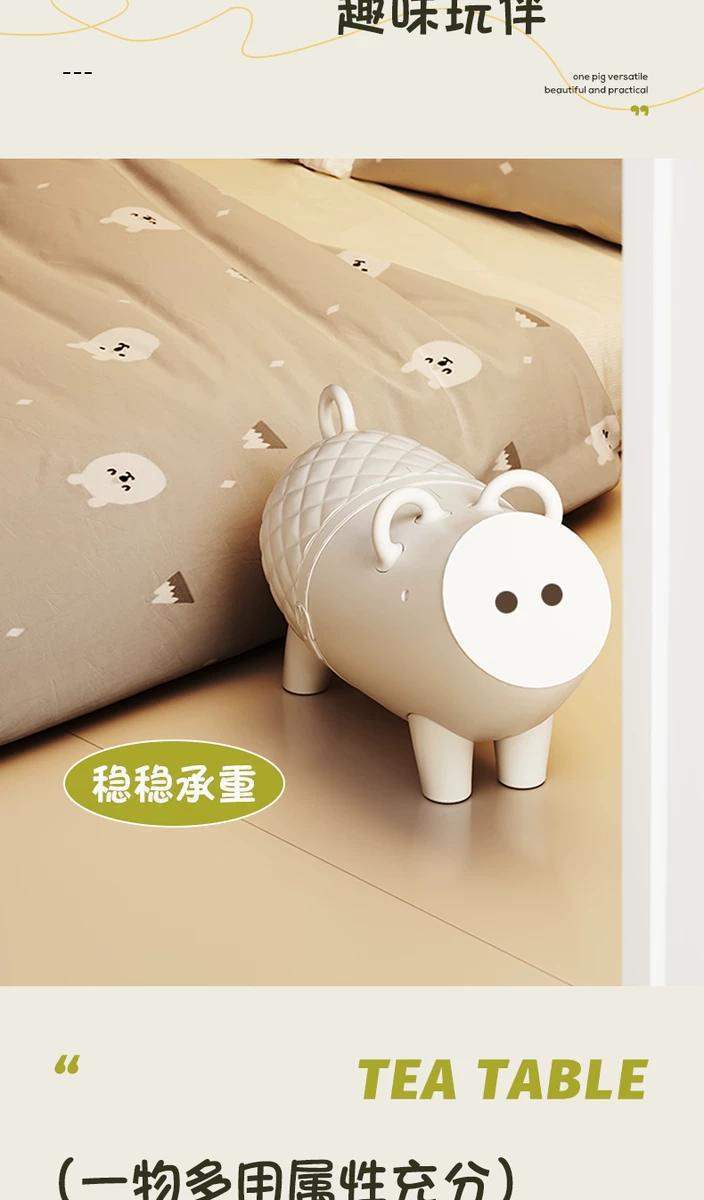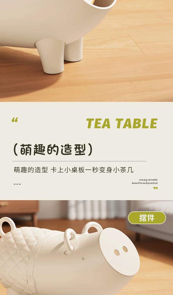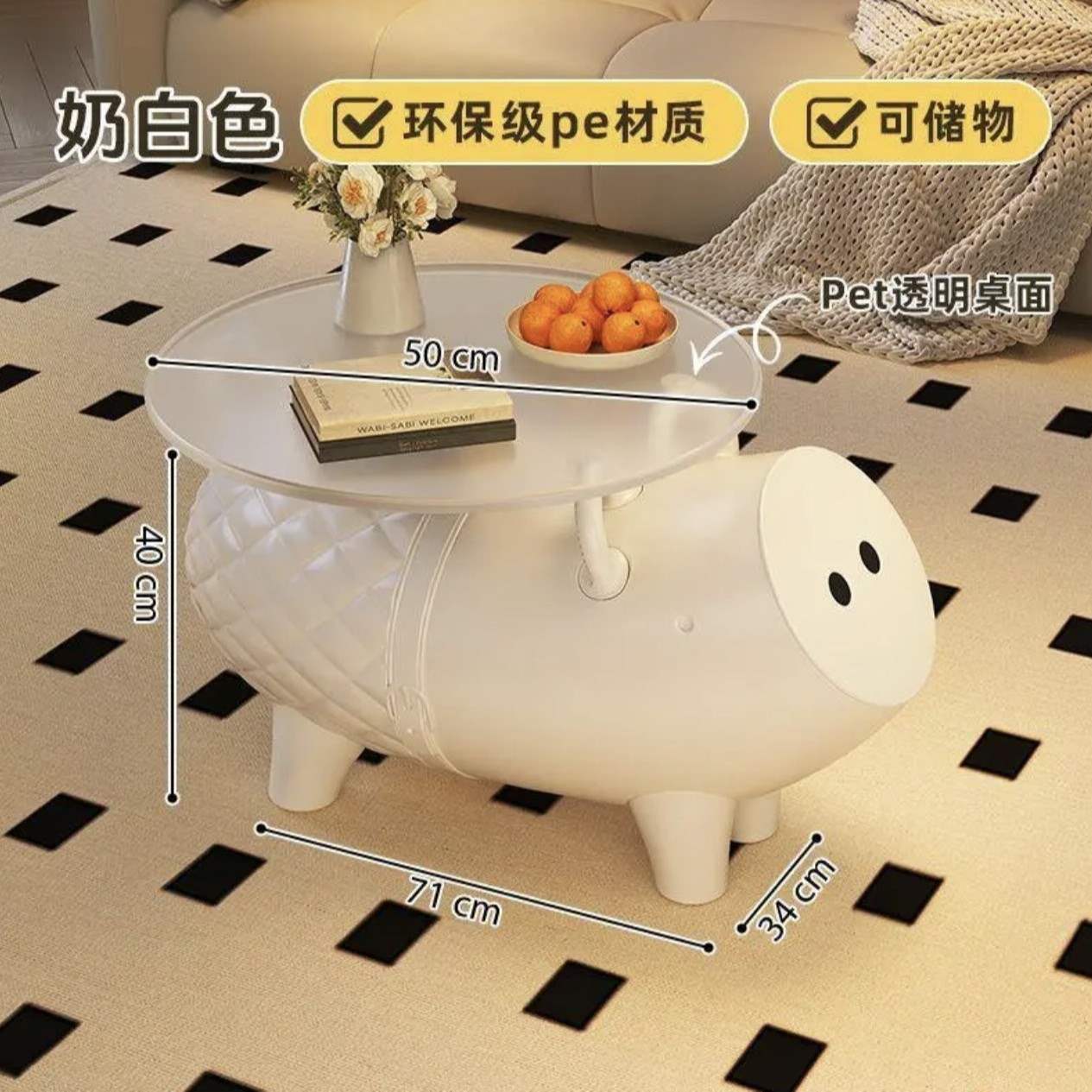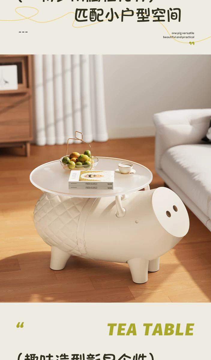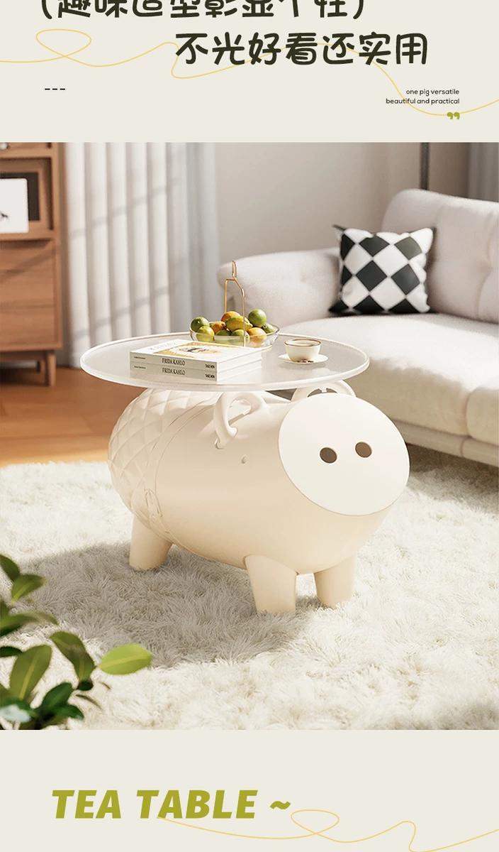 北欧风创意猪猪茶几落地客厅收纳摆件新款家用可储物卡通小桌子