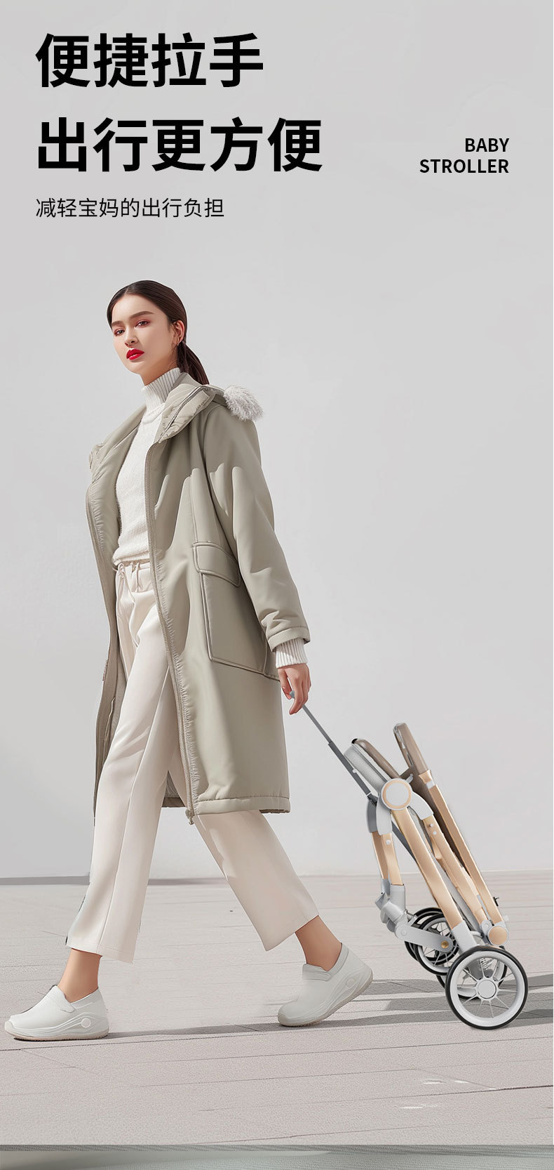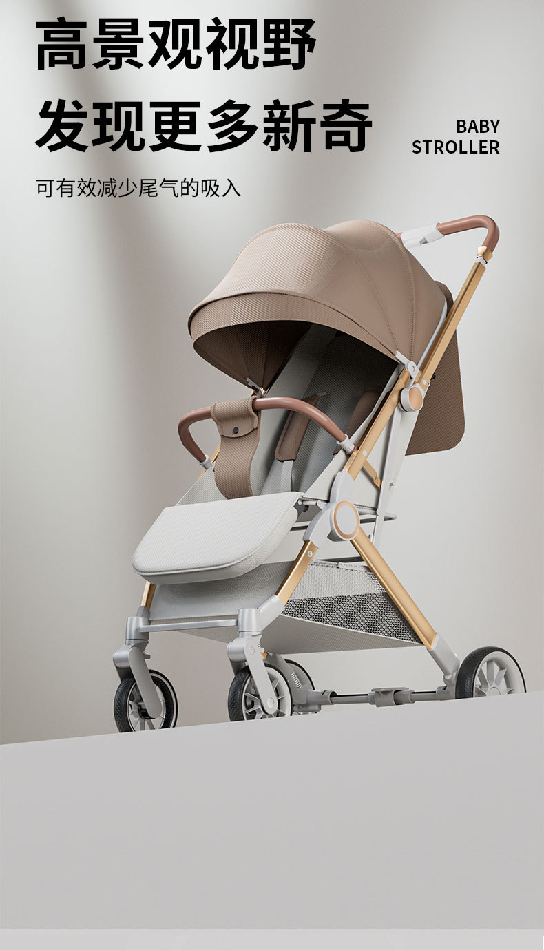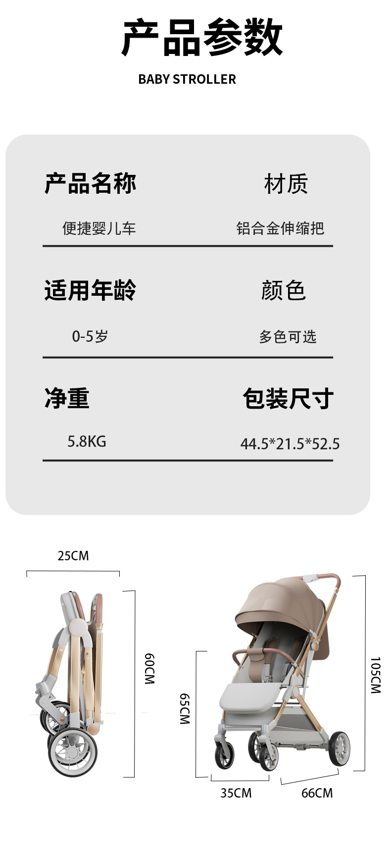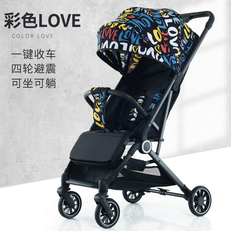 新款婴儿推车可坐躺三折叠带拉杆宝宝外出超轻便携口袋车避震伞车