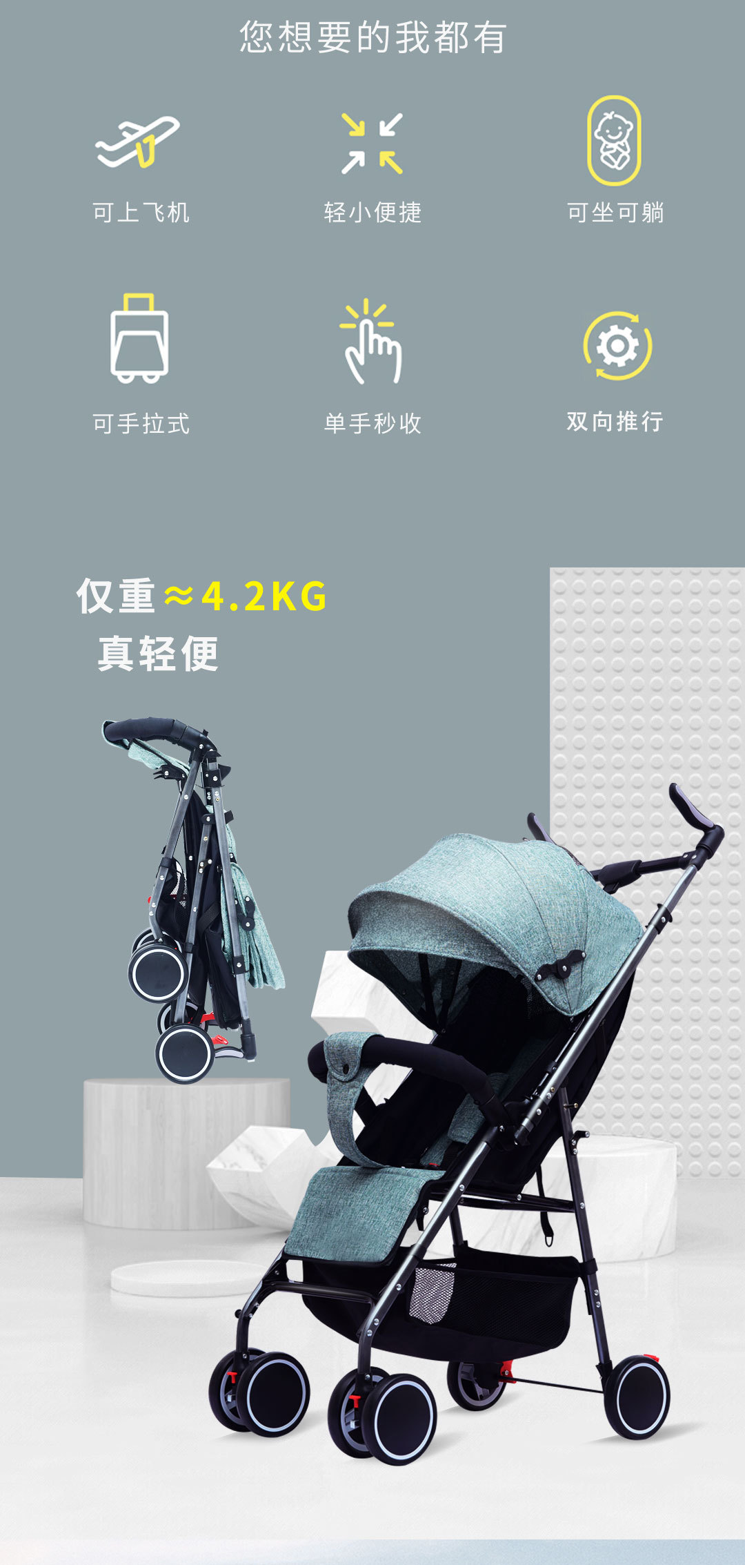 婴儿推车可坐可躺可折叠超轻便携宝宝儿童外出遛娃伞车简易小童车