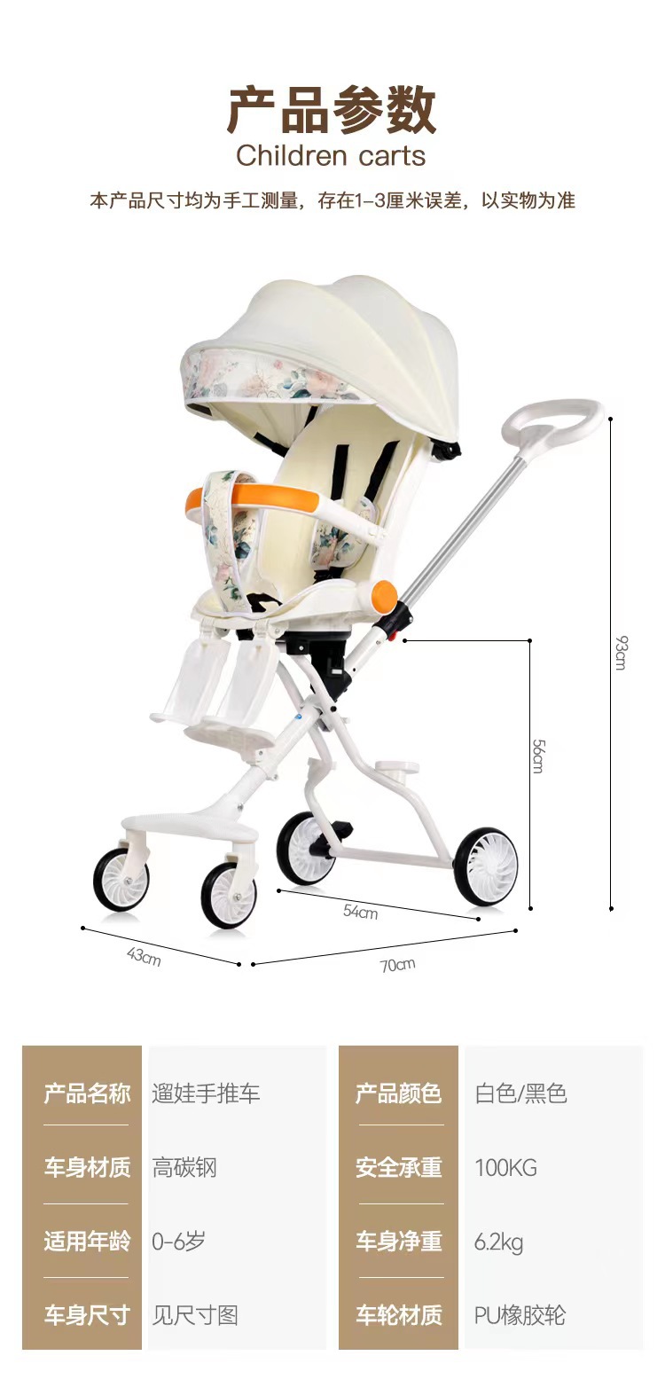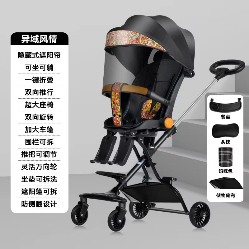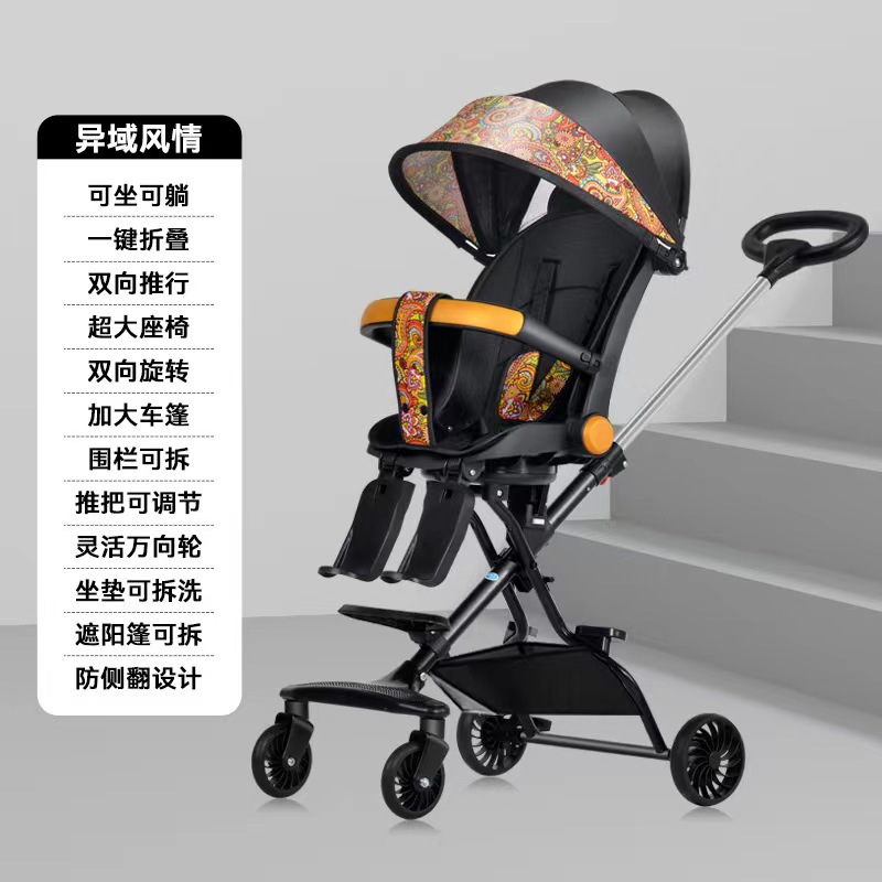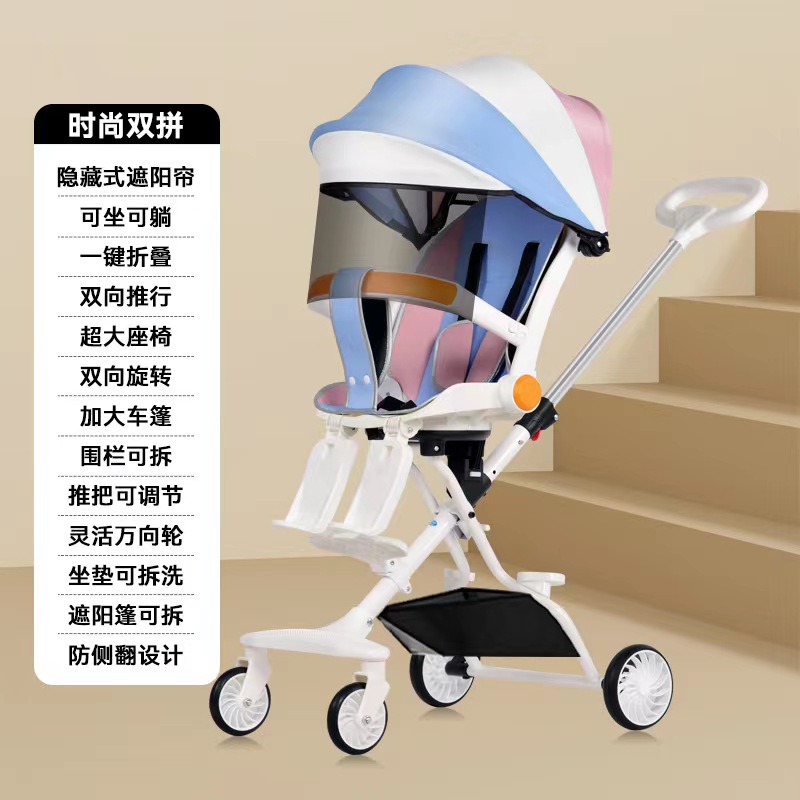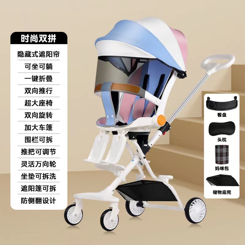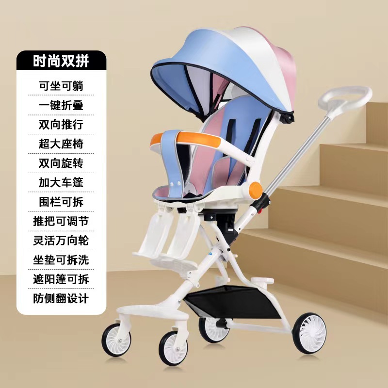 溜娃神器轻便可折叠双向可躺高景观遛娃带娃四轮宝宝婴儿手推车
