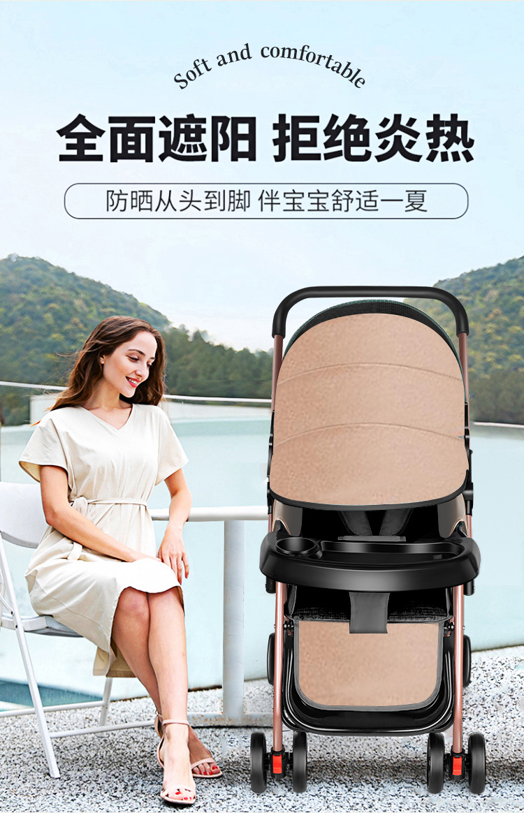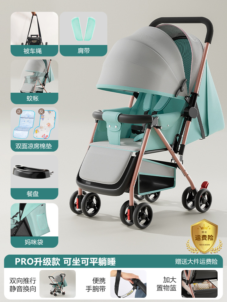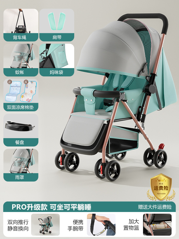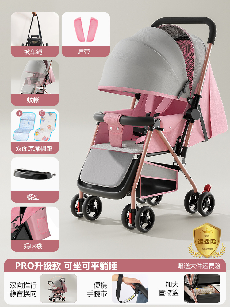 新款新生婴儿车推车可坐可躺0到3岁轻便可折叠一键收车手推车