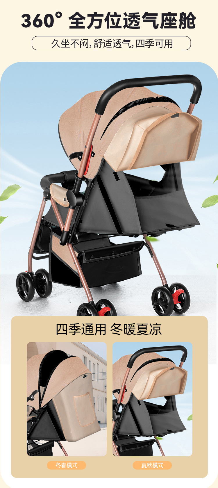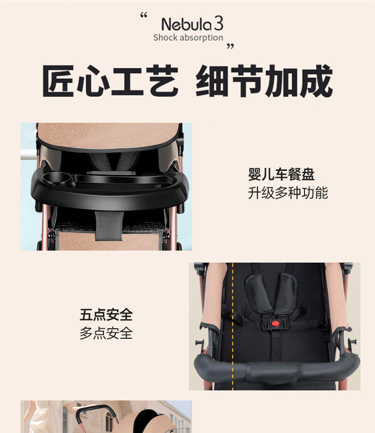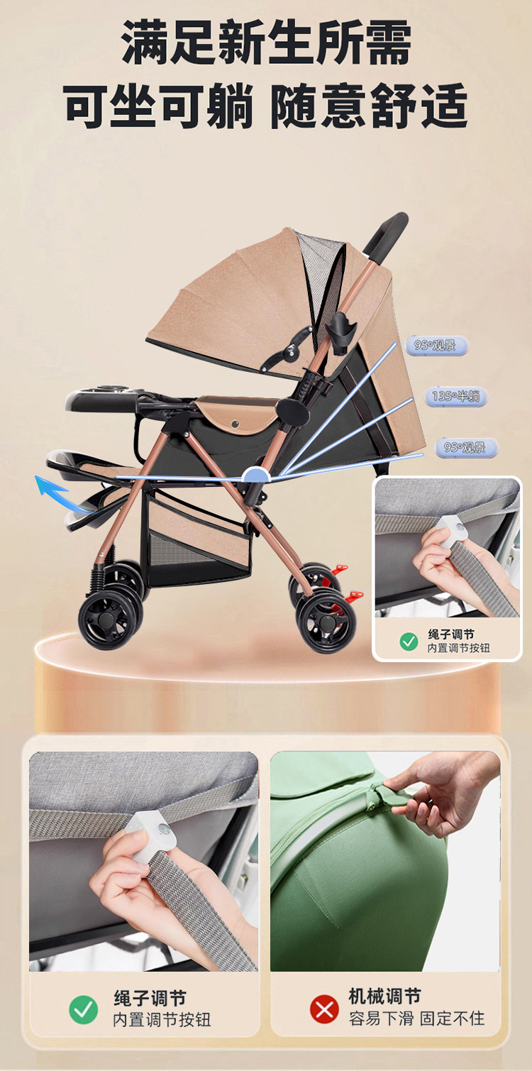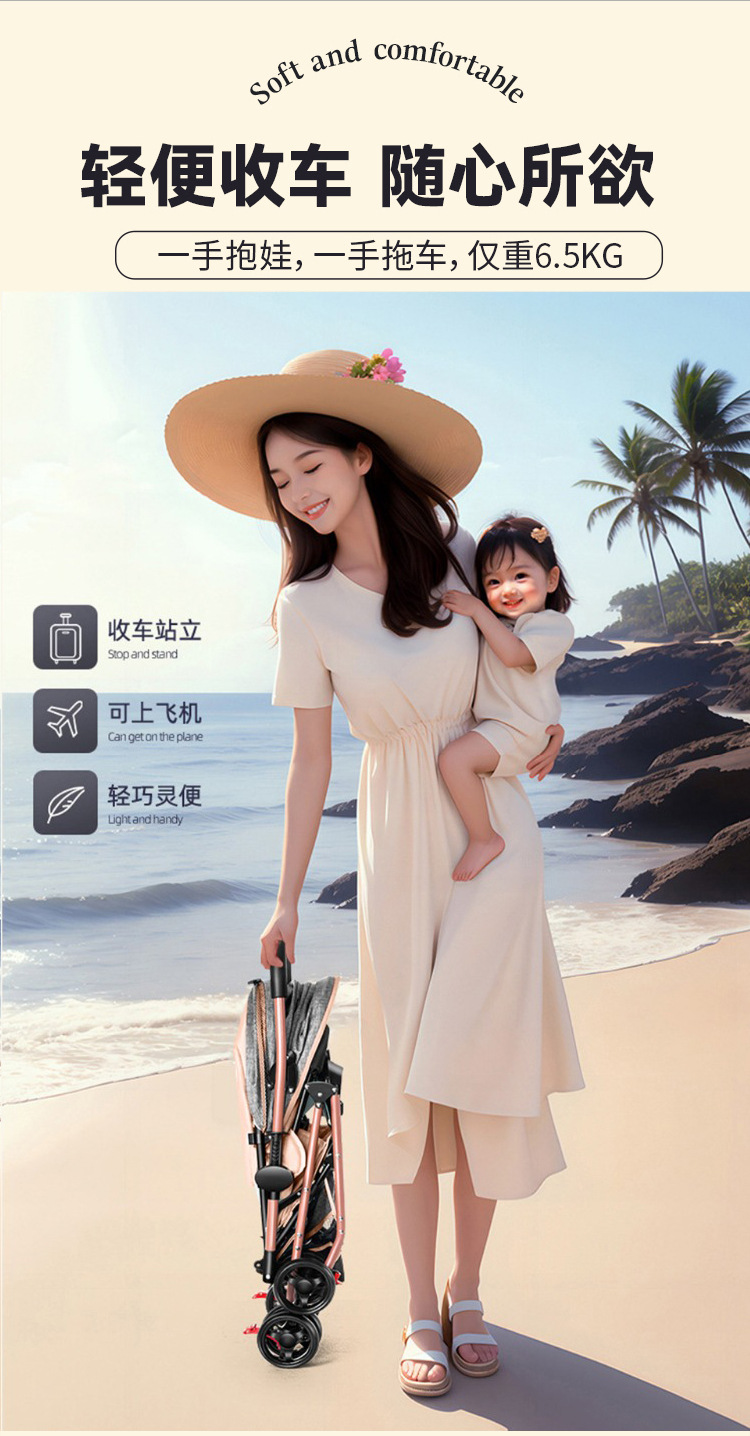 新款新生婴儿车推车可坐可躺0到3岁轻便可折叠一键收车手推车
