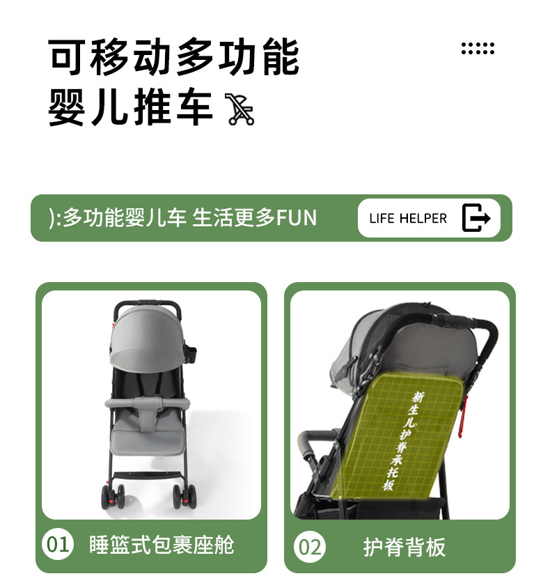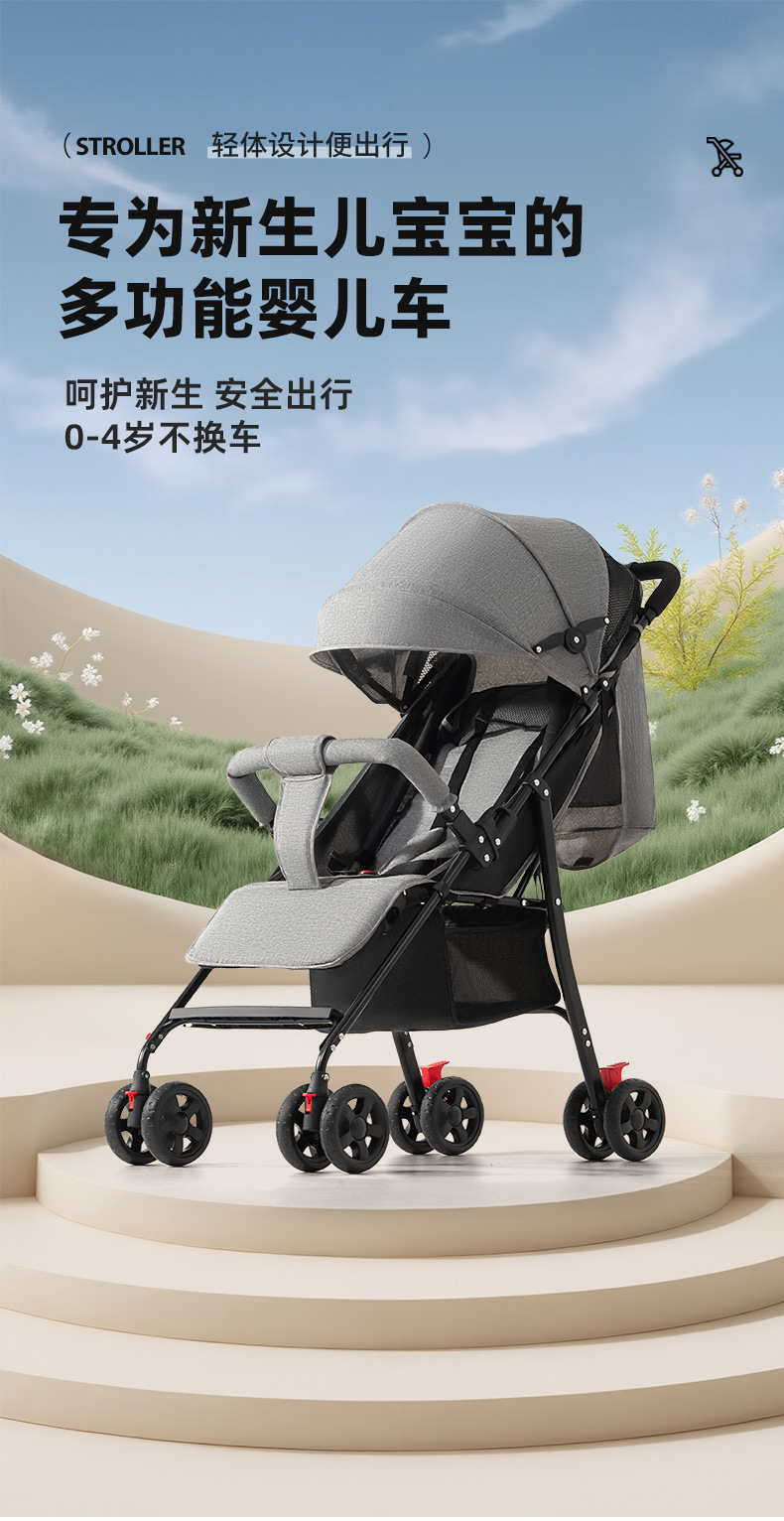 - M005-单向推车-灰色-标配款-可坐可躺(一键折叠)