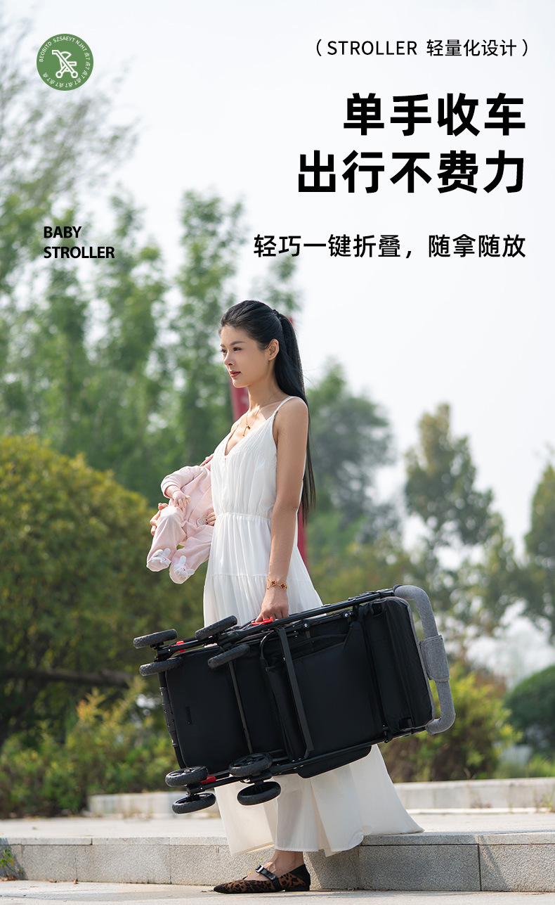 - M005-单向推车-黑色-旗舰款-可坐可躺(一键折叠)