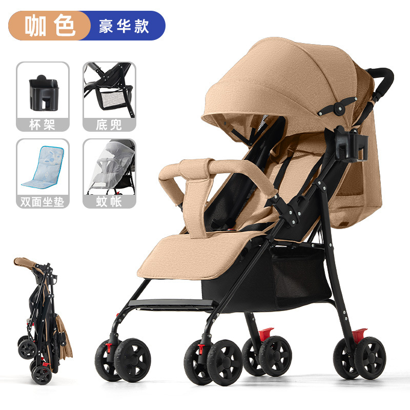 - M005-单向推车-卡其-豪华款-可坐可躺(一键折叠)