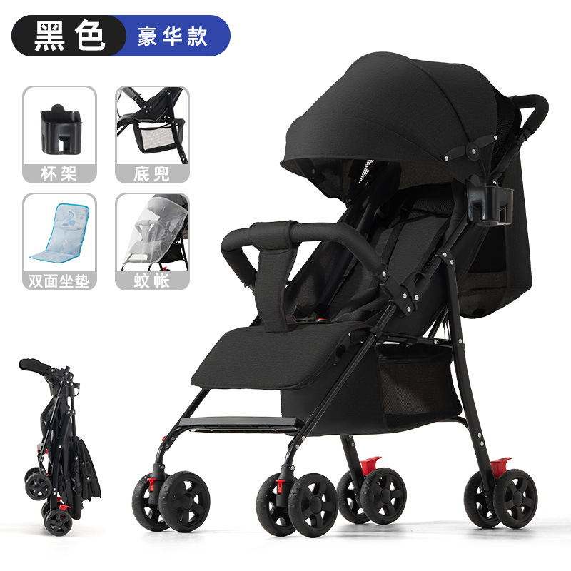 - M005-单向推车-黑色-豪华款-可坐可躺(一键折叠)